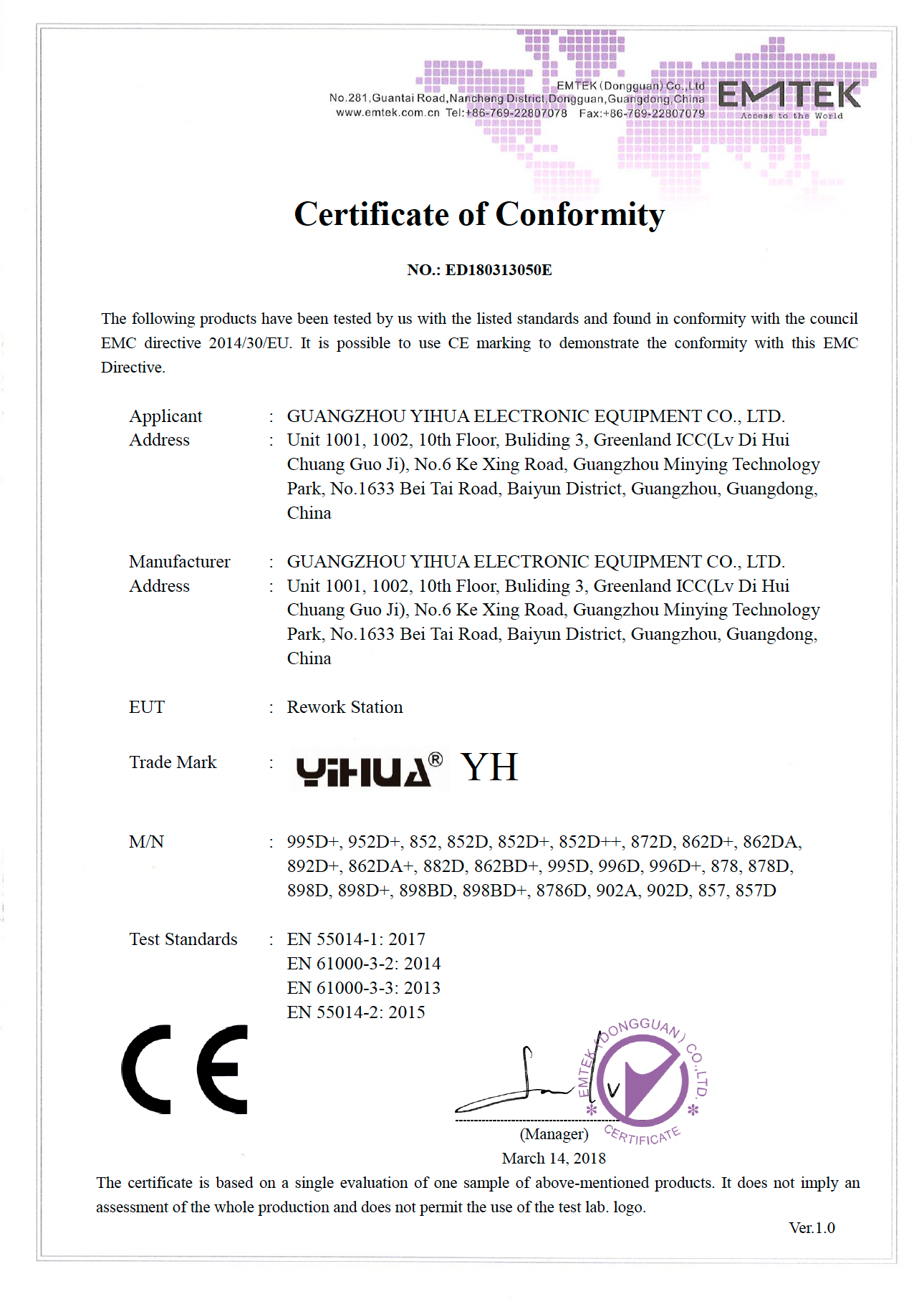 1️⃣ Stacja 3w1 Yihua 992DA z kablem zasilającym