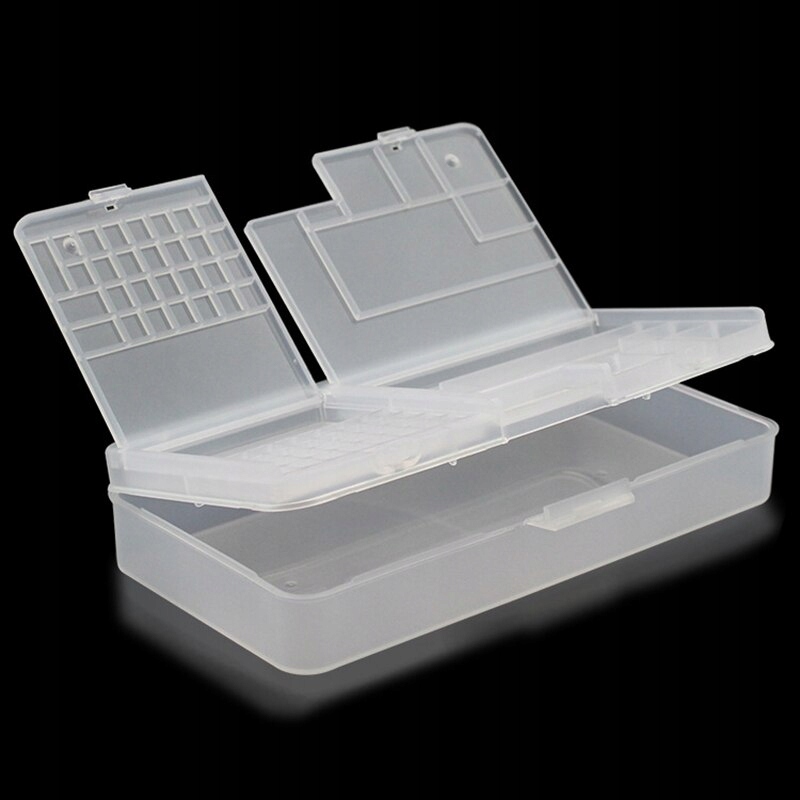 Organizer na komponenty wyposażony wiele wygodnych przegródek, w których możesz przechowywać płyty główne, narzędzia, śrubki, czy inne komponenty. Idealnie sprawdzi się do serwisów GSM, oraz domowych warsztatów. Organizer pozwala na utrzymanie porządku w miejscu pracy, oraz zapobiega zagubieniu elementów. Transparentny pojemnik ułatwia przejrzenie zawartości.