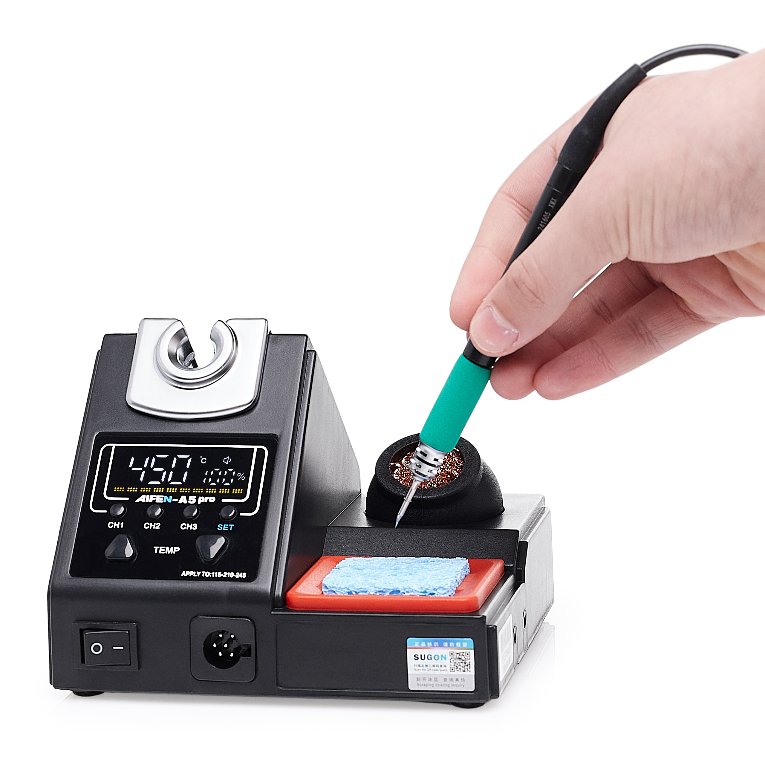 Elegancki i funkcjonalny design stacji lutowniczej grotowej Aifen wyróżnia się nie tylko estetyką, ale także intuicyjnym rozmieszczeniem elementów sterujących. Dzięki lekkiej i kompaktowej konstrukcji urządzenie zajmuje mało miejsca na stanowisku pracy, co ułatwia organizację przestrzeni i zwiększa wygodę użytkowania. To połączenie stylu z praktycznością, które podnosi komfort pracy.