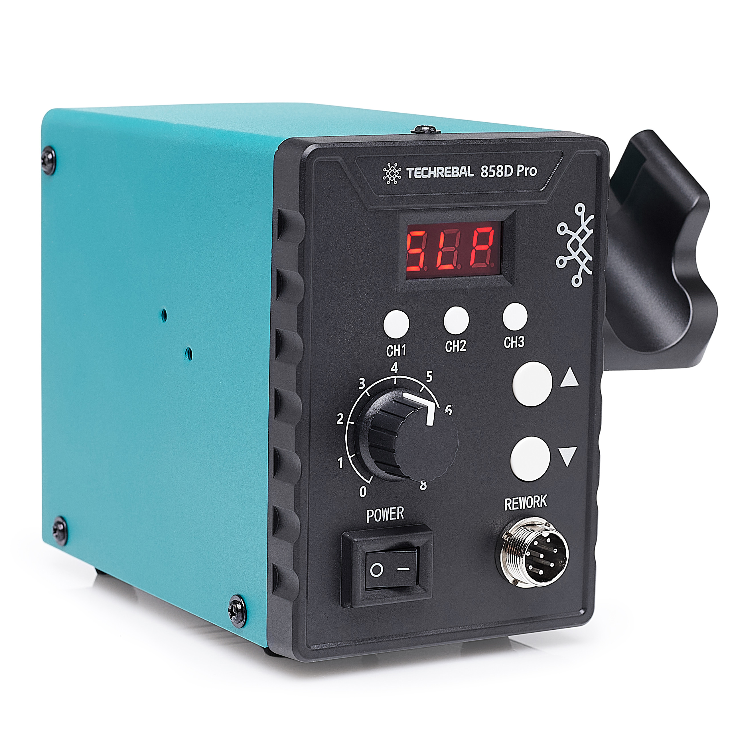 Stacja lutownicza Hot-Air TECHREBAL 858D Pro + Spoiwo PP Czarne 100g + Dysza but
