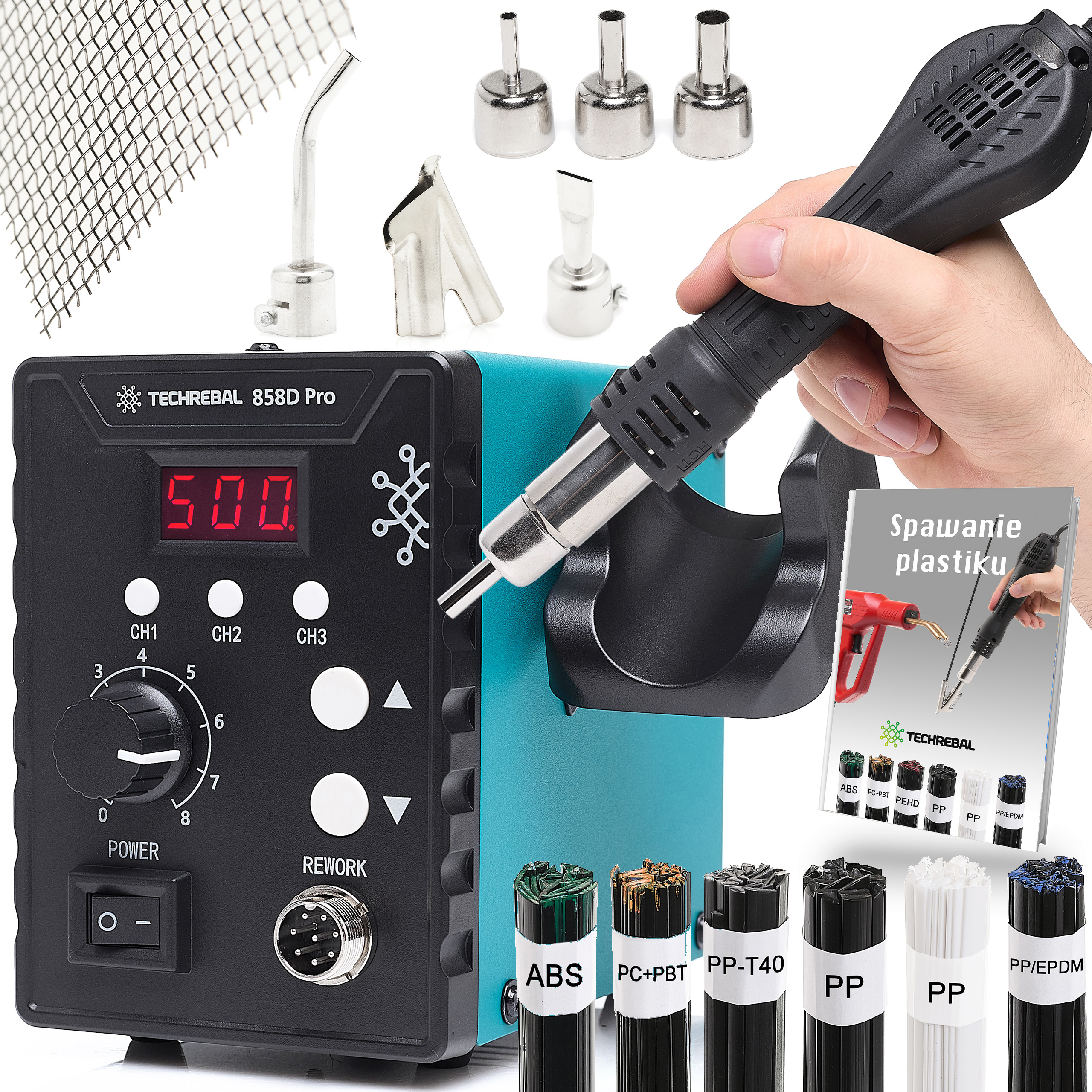 Stacja lutownicza hot air Techrebal 858D Pro z zestawem do spawania plastiku