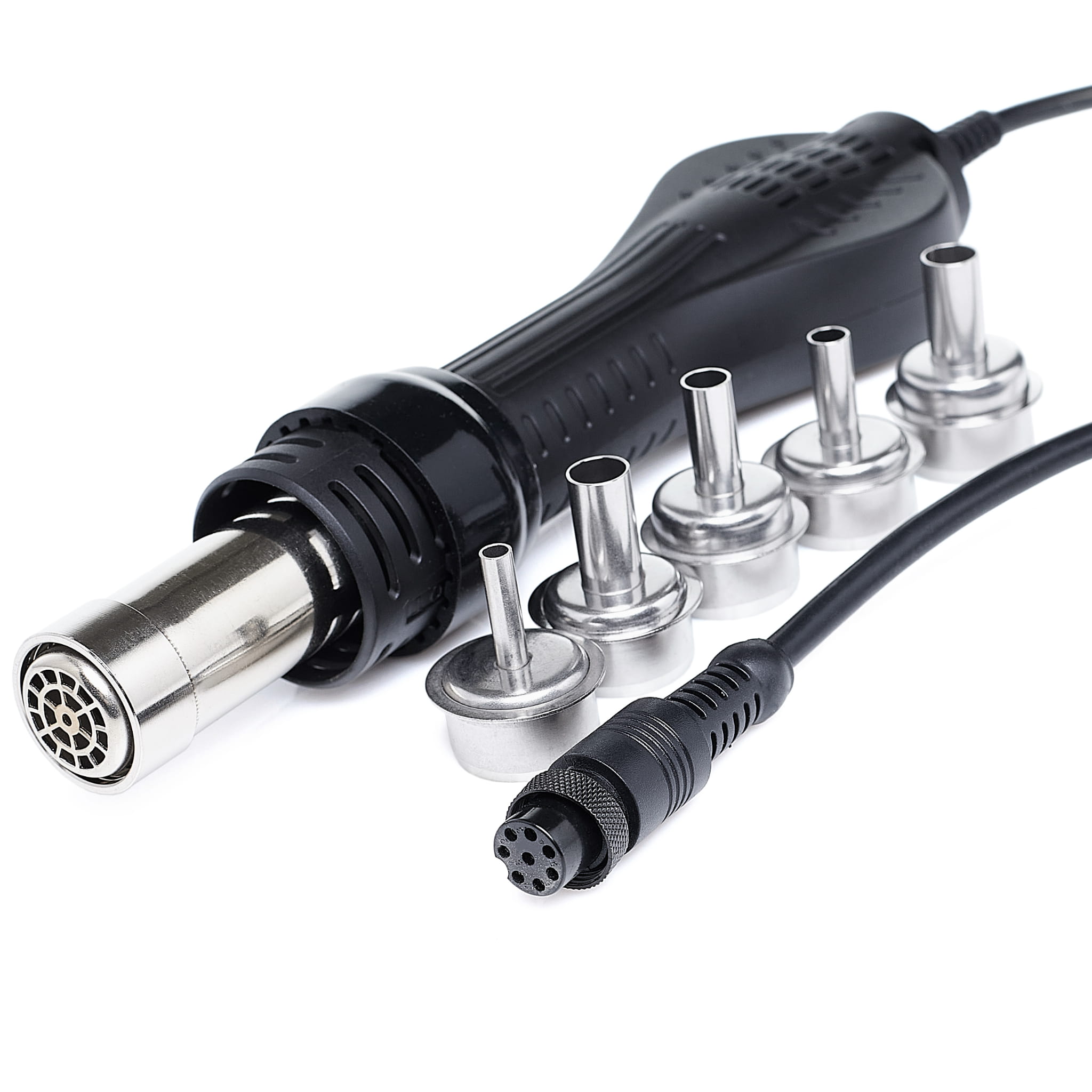 Umożliwia kontrolę nad przepływem gorącego powietrza, co jest kluczowe dla delikatnych prac przy małych elementach.