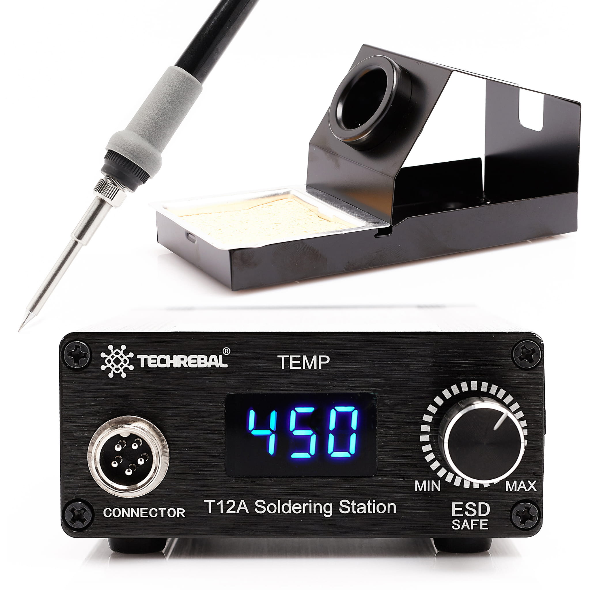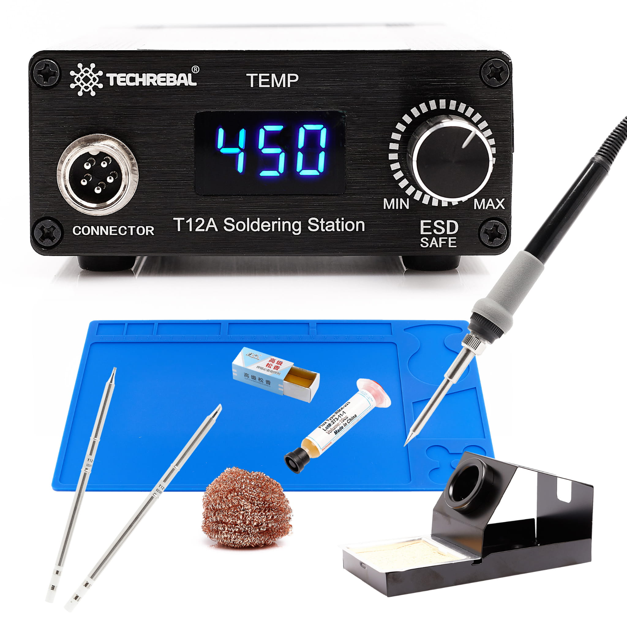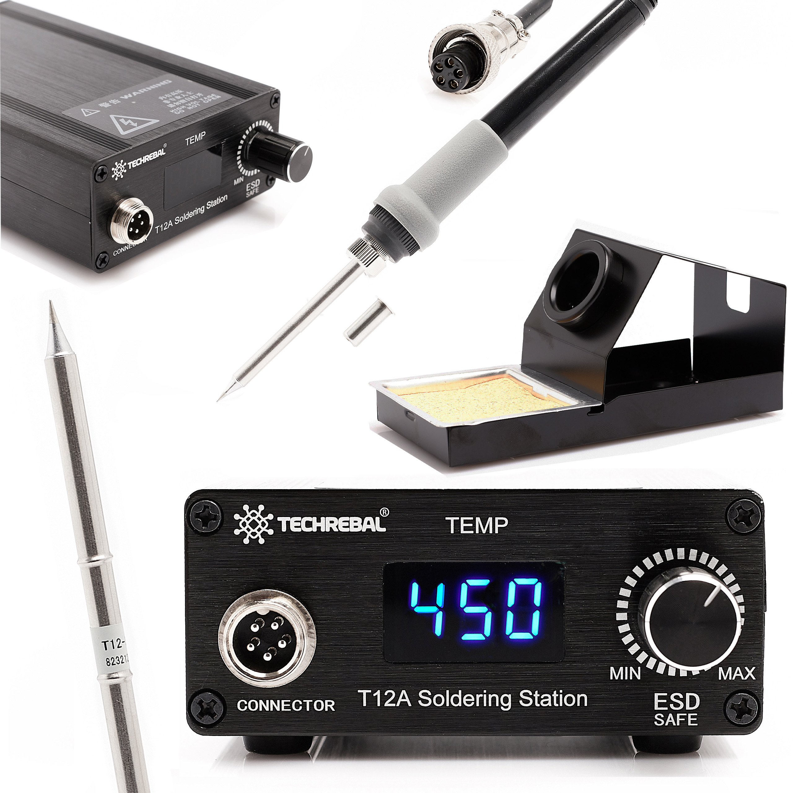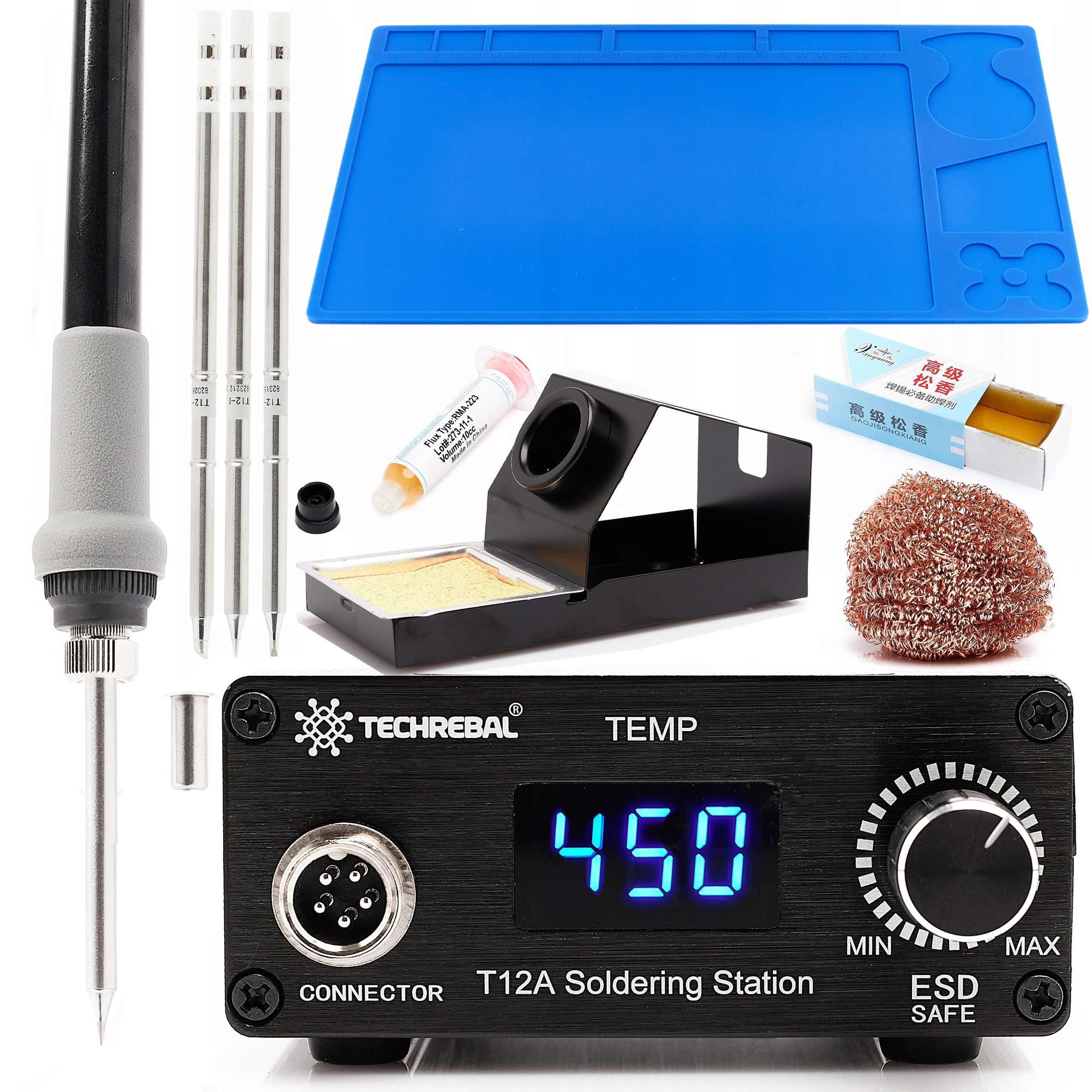 Stacja lutownicza TECHREBAL T12A + Zestaw (Mata, groty T12, czyścik, kalafonia, topnik)