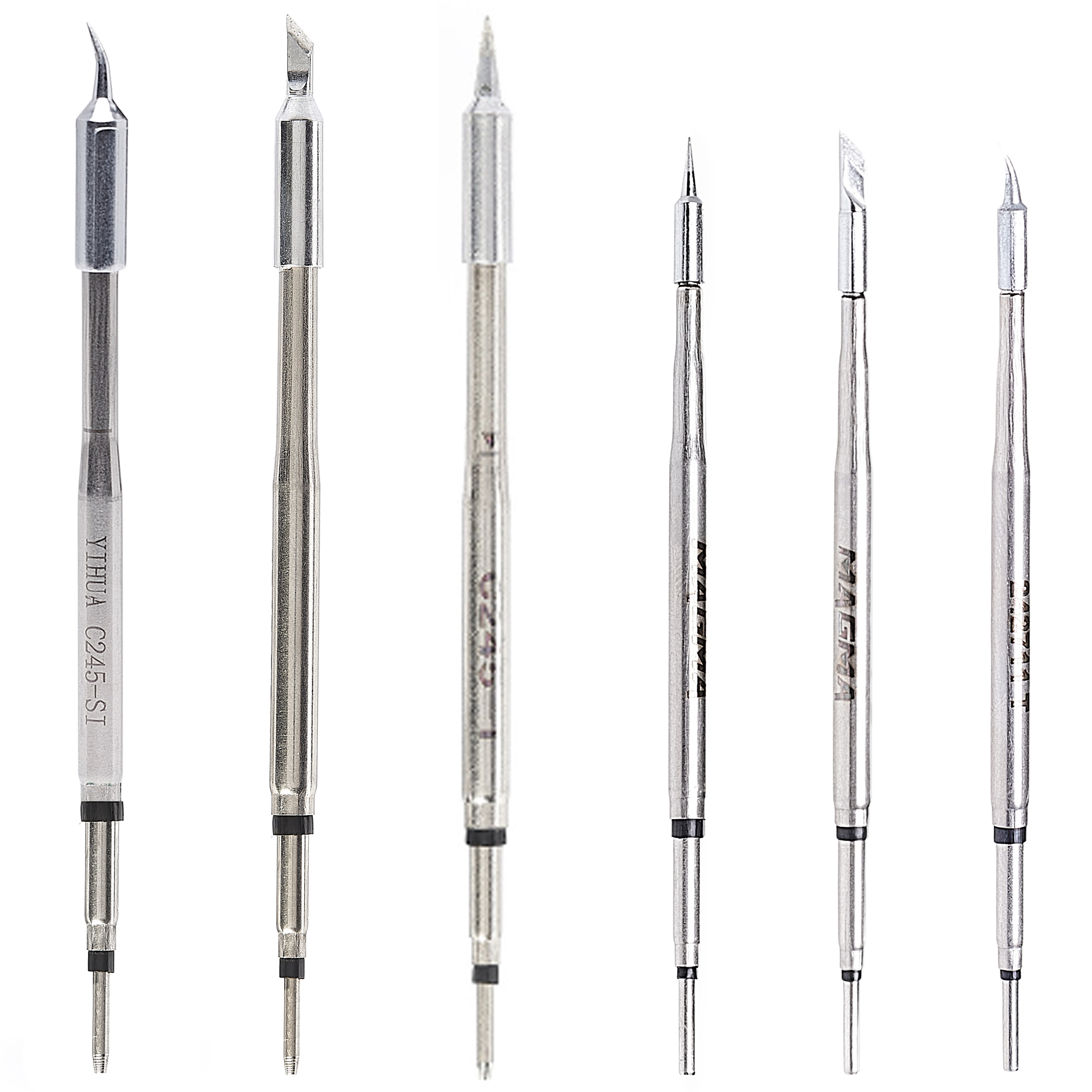 Zestaw zawiera 2 różne kolby lutownicze wraz z sześcioma grotami (po 3 dla każdej kolby).