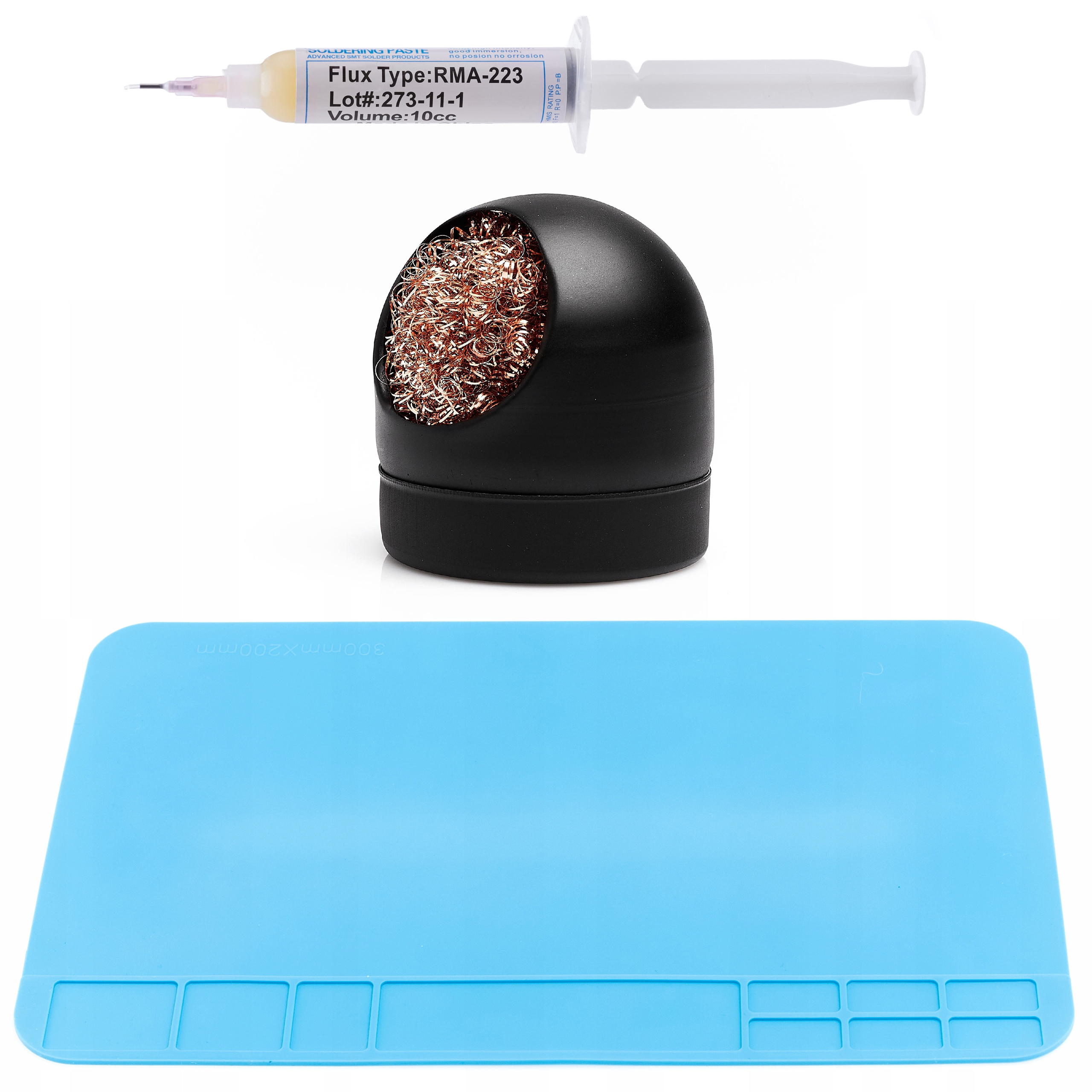 pozwala precyzyjnie aplikować topnik, co poprawia zwilżanie i jakość lutów — razem tworzą praktyczny zestaw serwisowy.