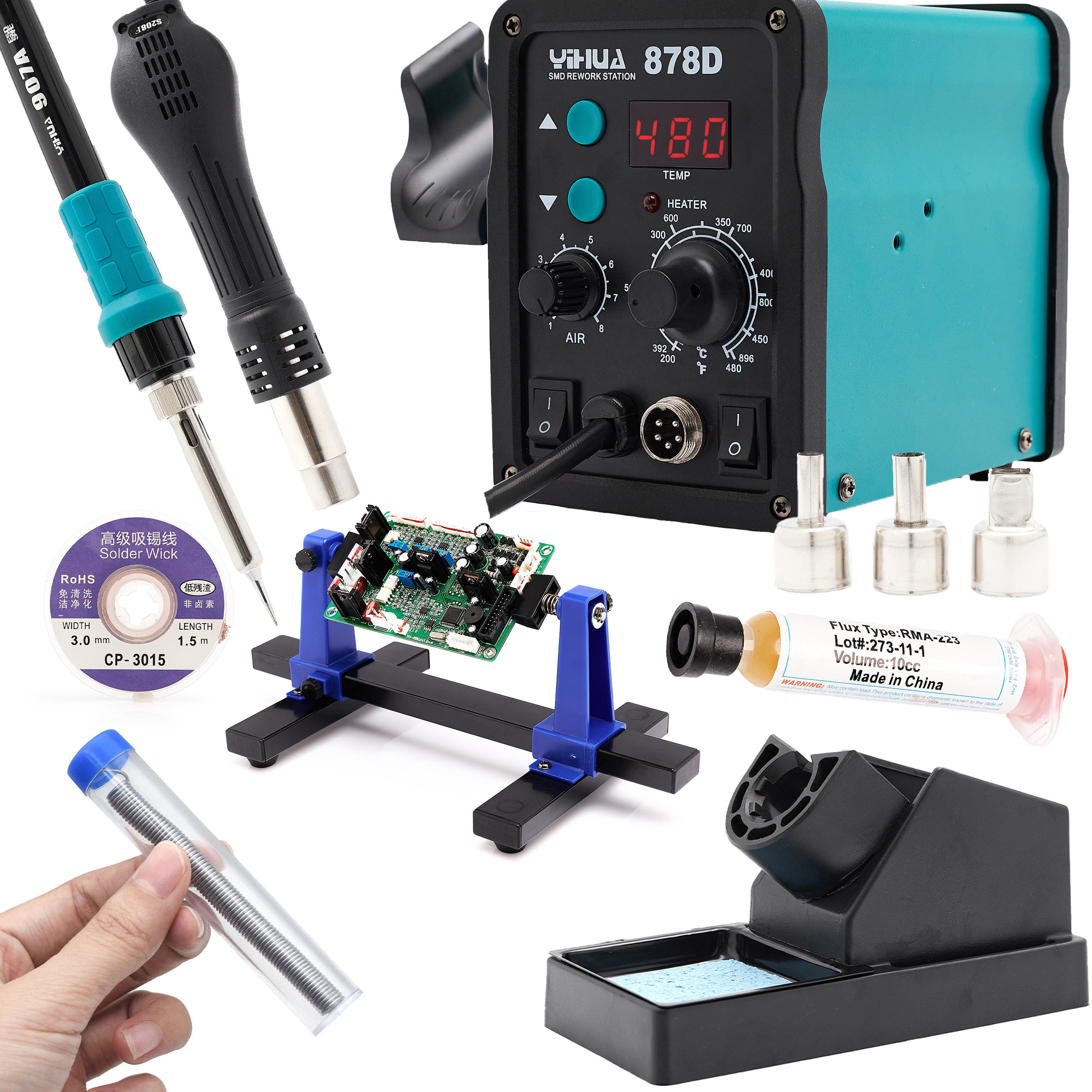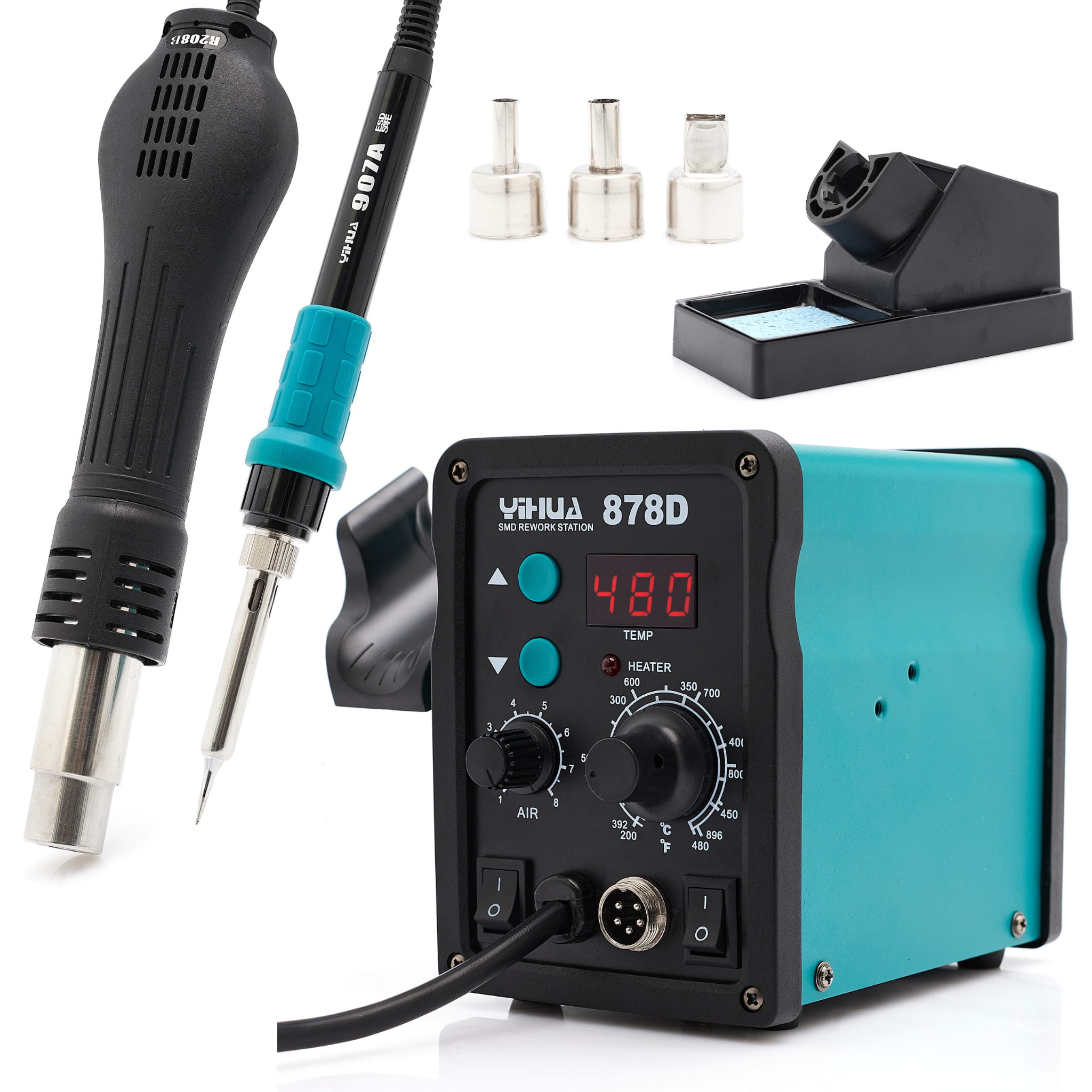 Stacja lutownicza 2w1 HotAir + Kolbowa Yihua 878D + KIT34