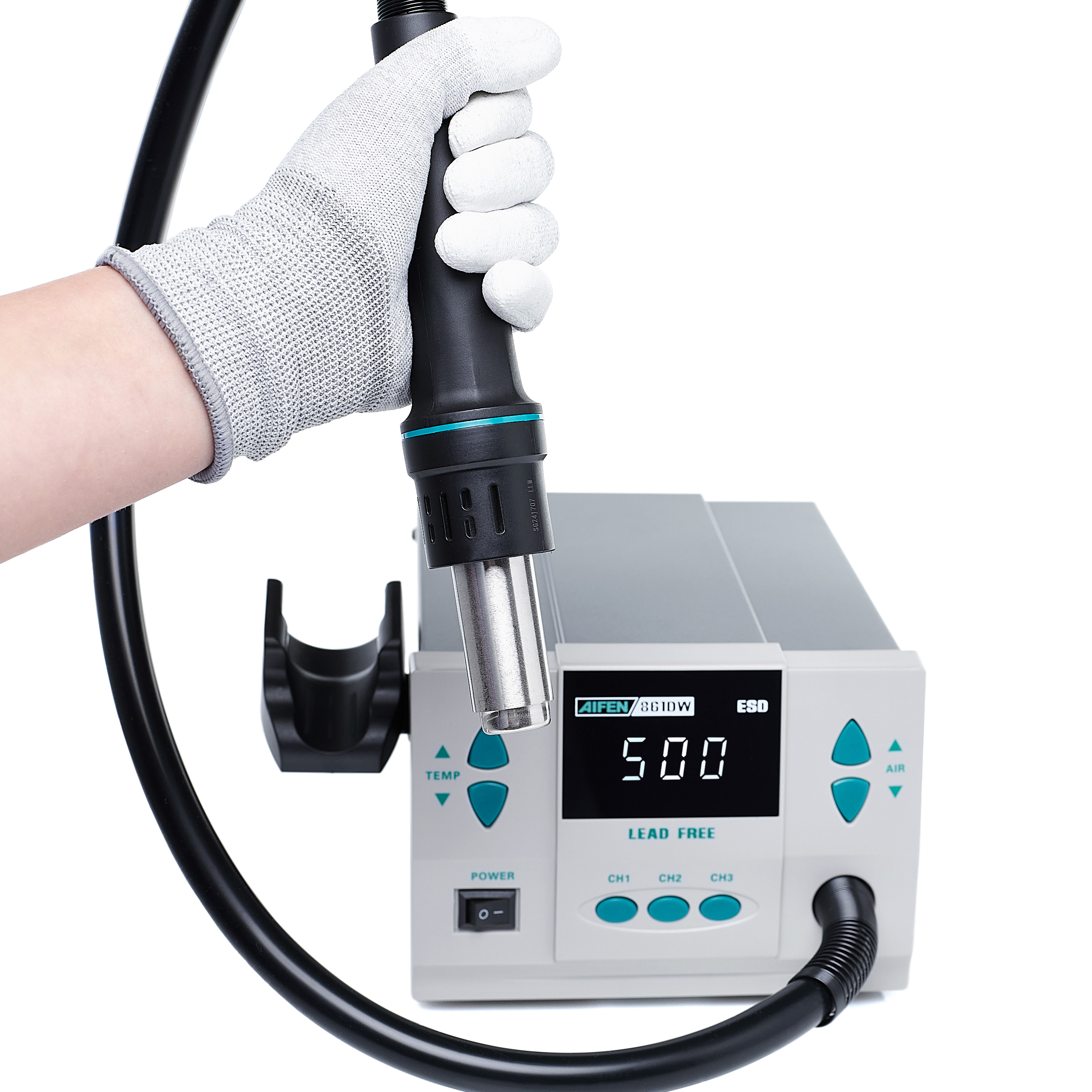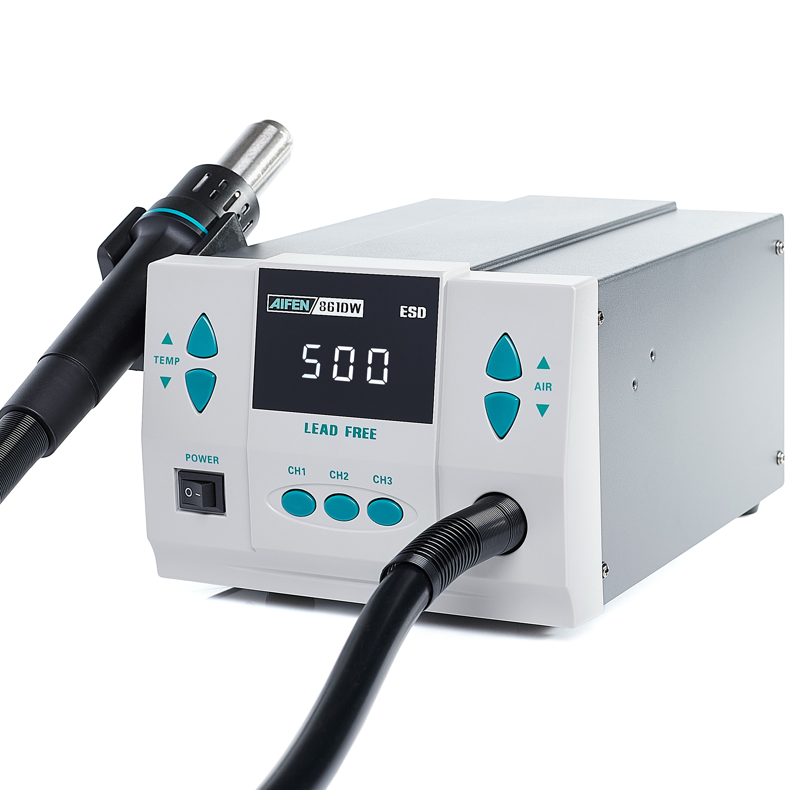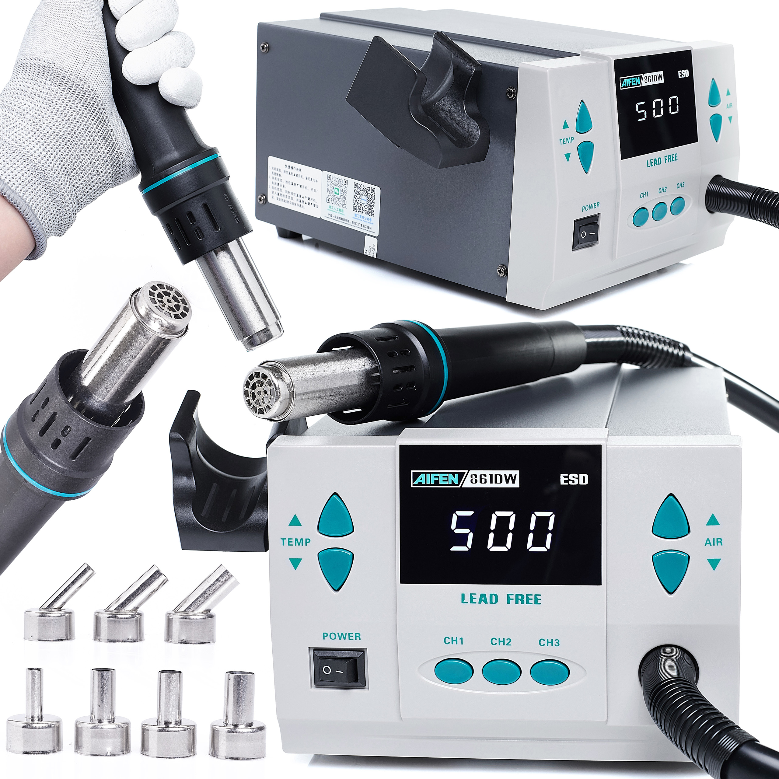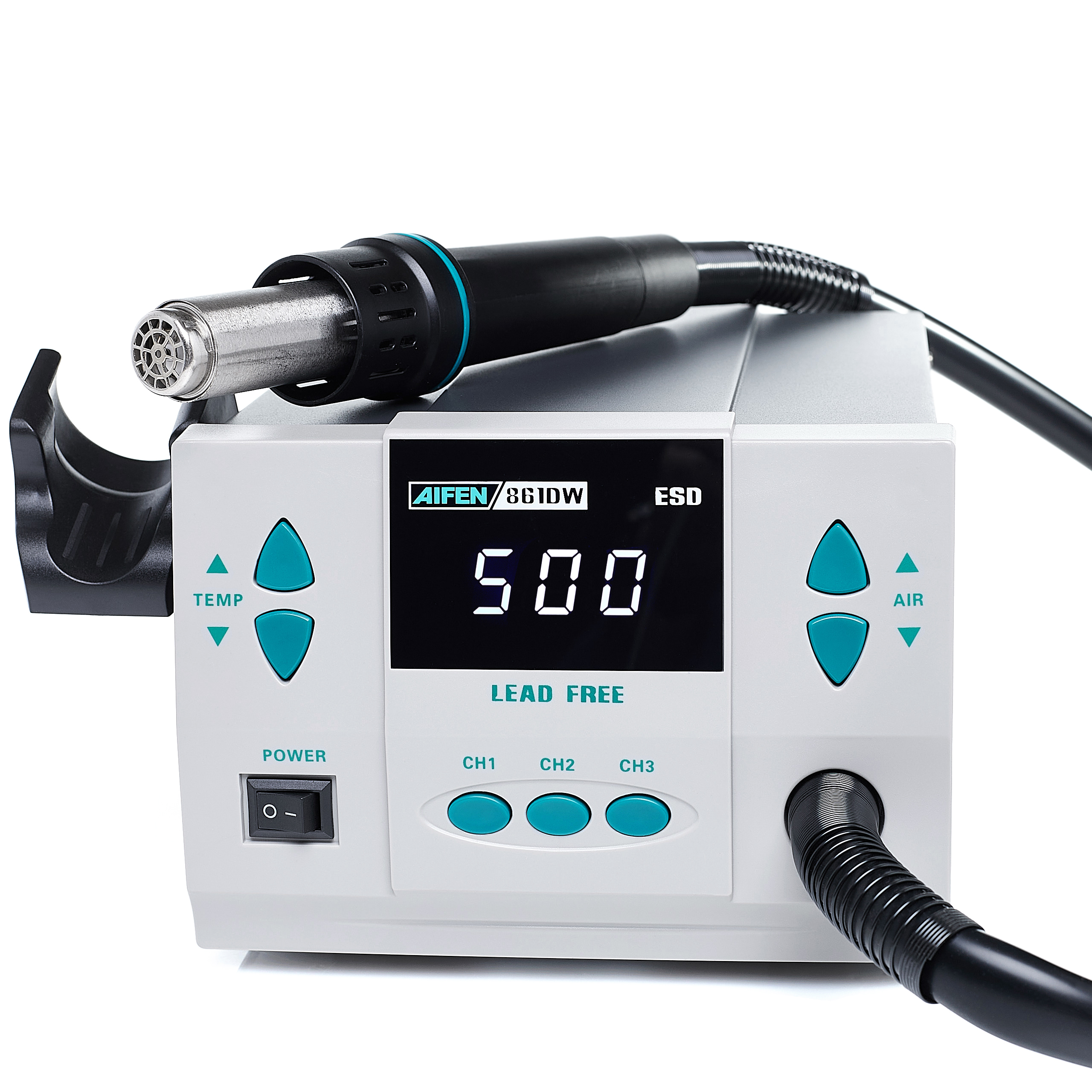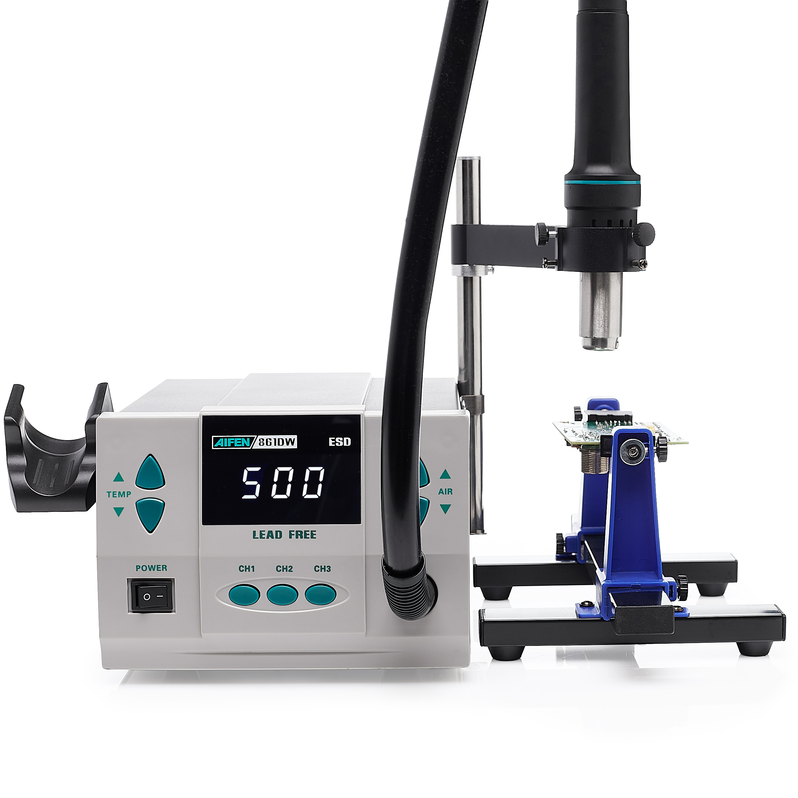 Stacja lutownicza hot-air AIFEN 861DW 1000W + Uchwyt Hot-Air + Uchwyt PCB + Zestaw Topnik + topnik