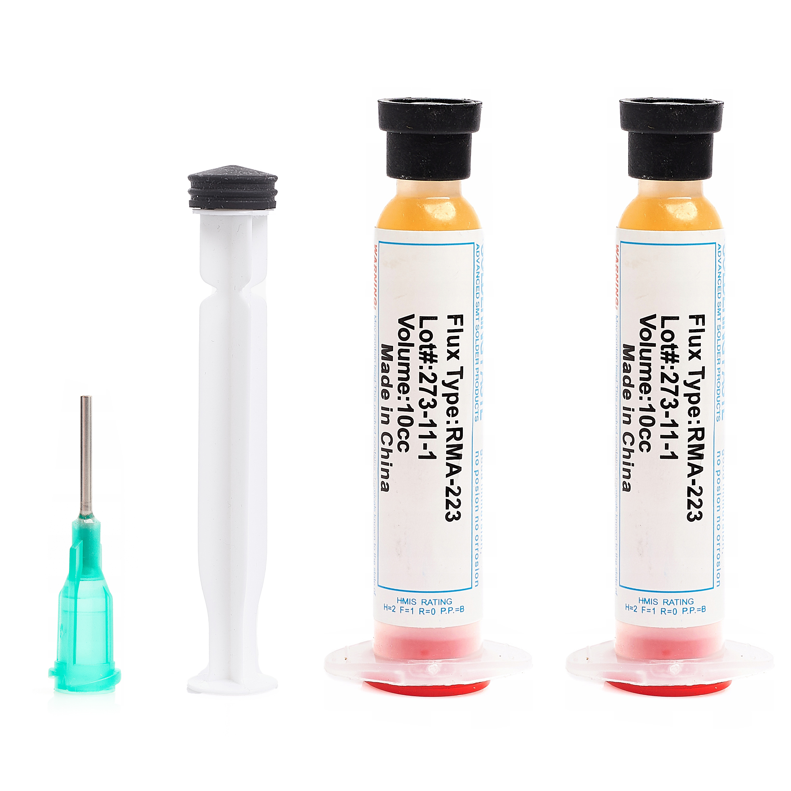 7️⃣ Zestaw 2x Topnik lutowniczy RMA-223 10cc + Tłoczek + Igła dozownicza