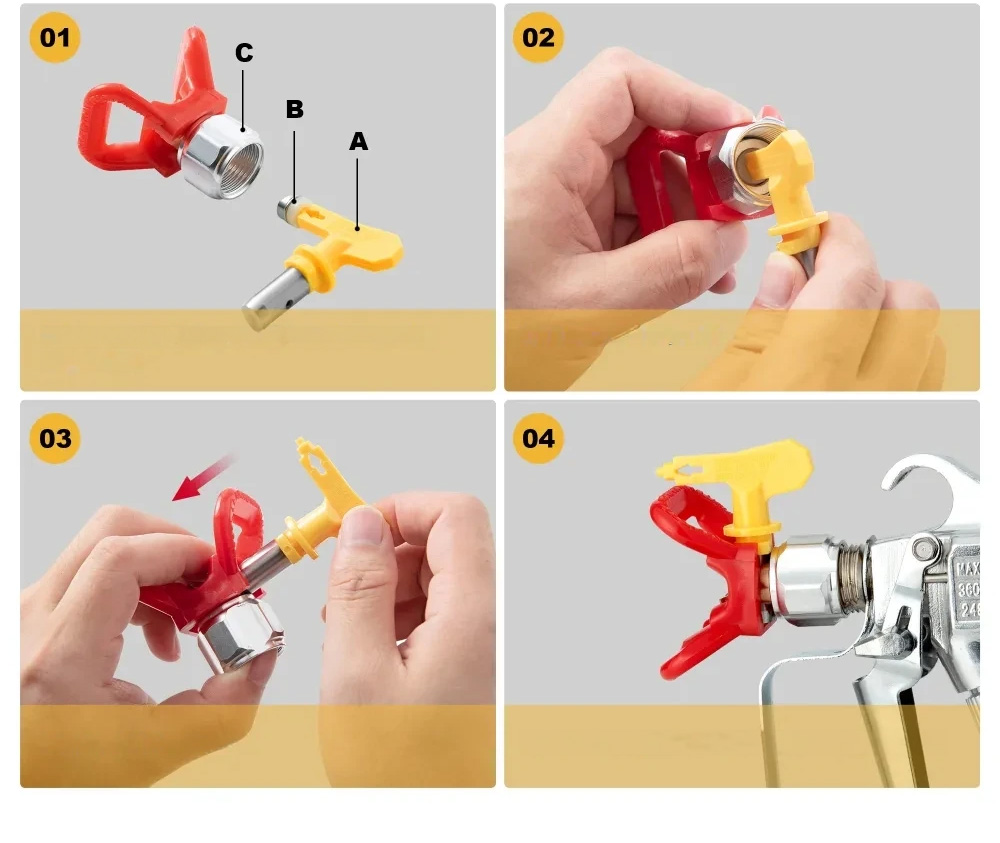 2️⃣ Dwie ostatnie cyfry (B) odnoszą się do rozmiaru otworu dyszy i rodzaju farby, którą można aplikować. Im większa liczba, tym gęstsza farba, którą dysza może obsłużyć. Na przykład dysza "517" oznacza szerokość strumienia 25 cm i średnicę otworu dyszy 0,017 cala.