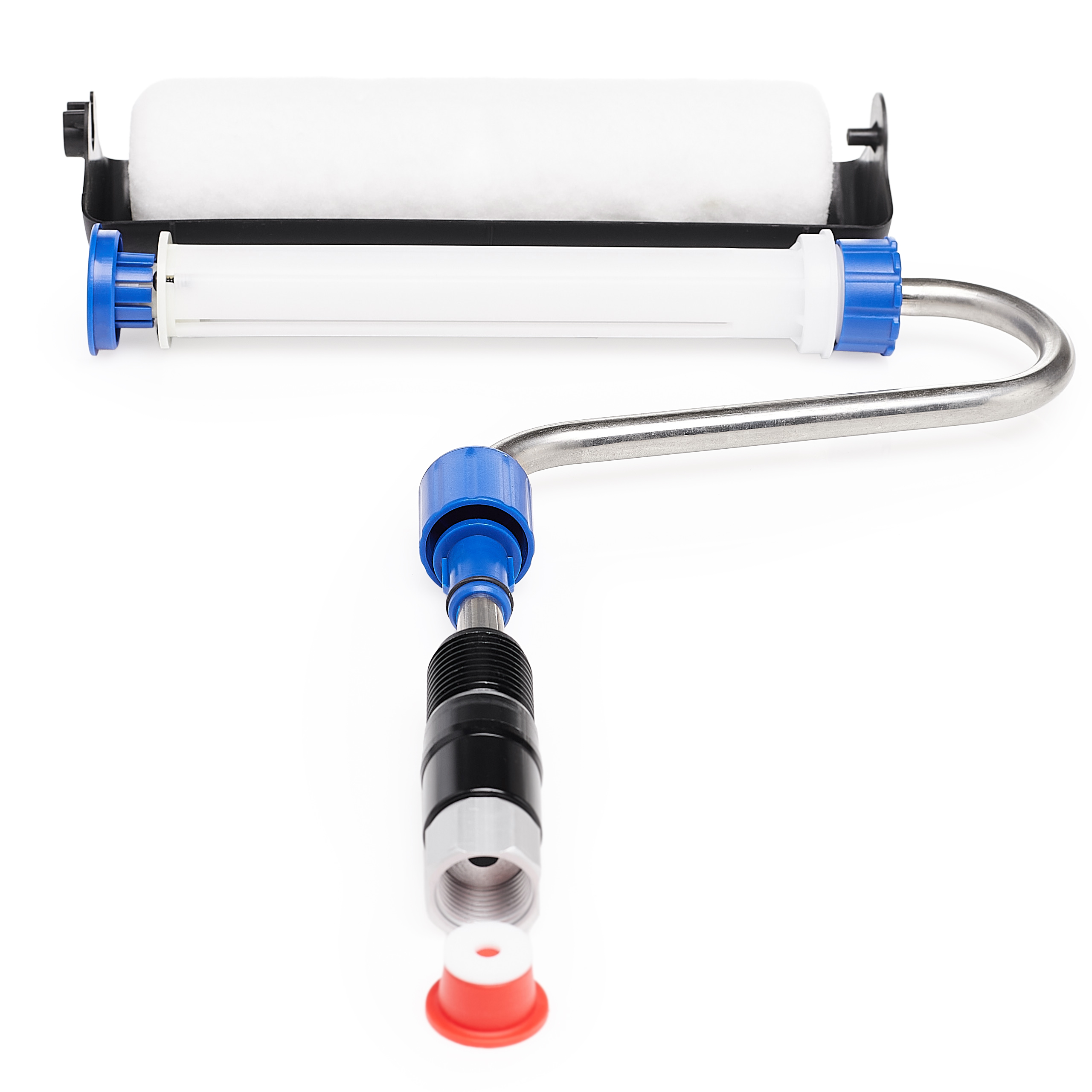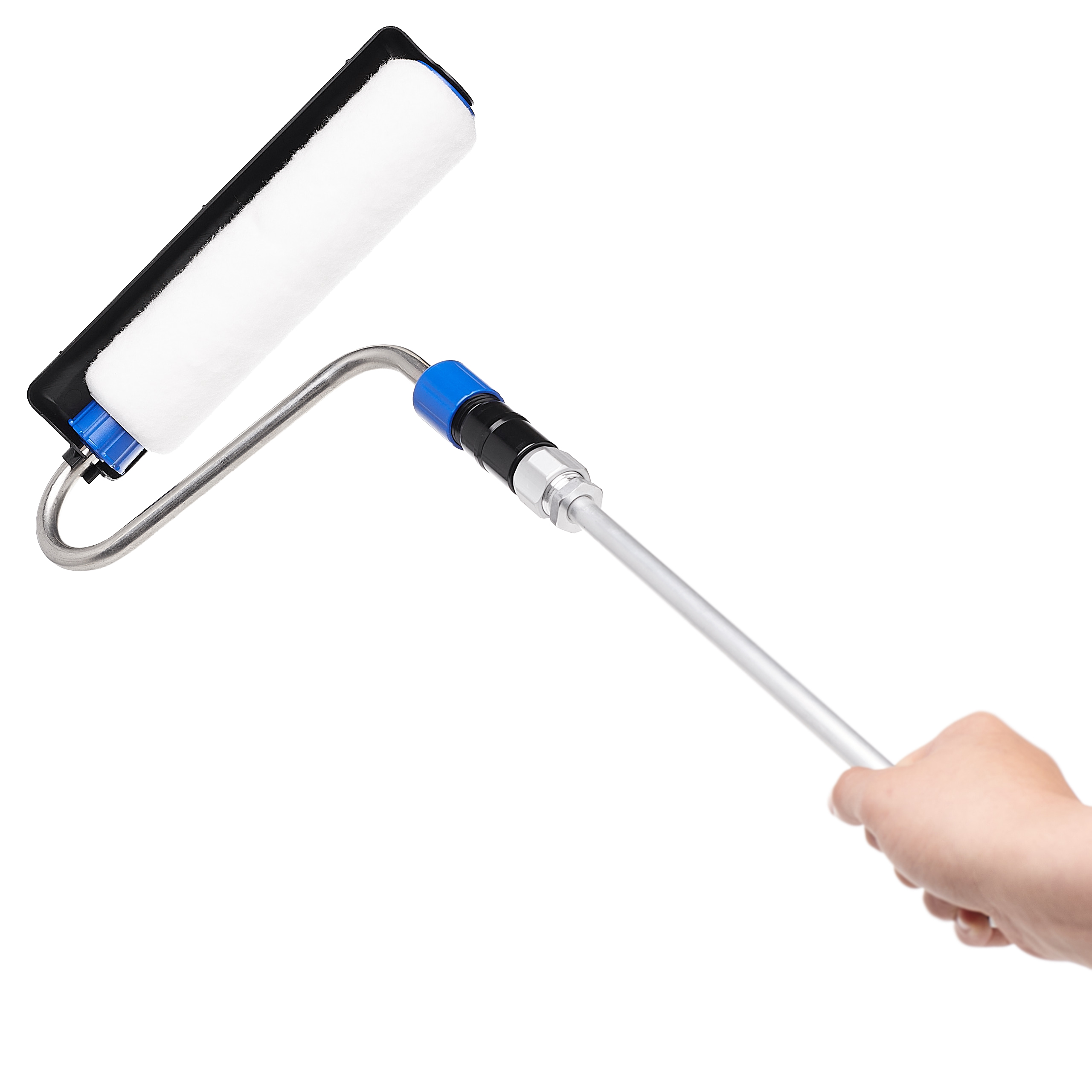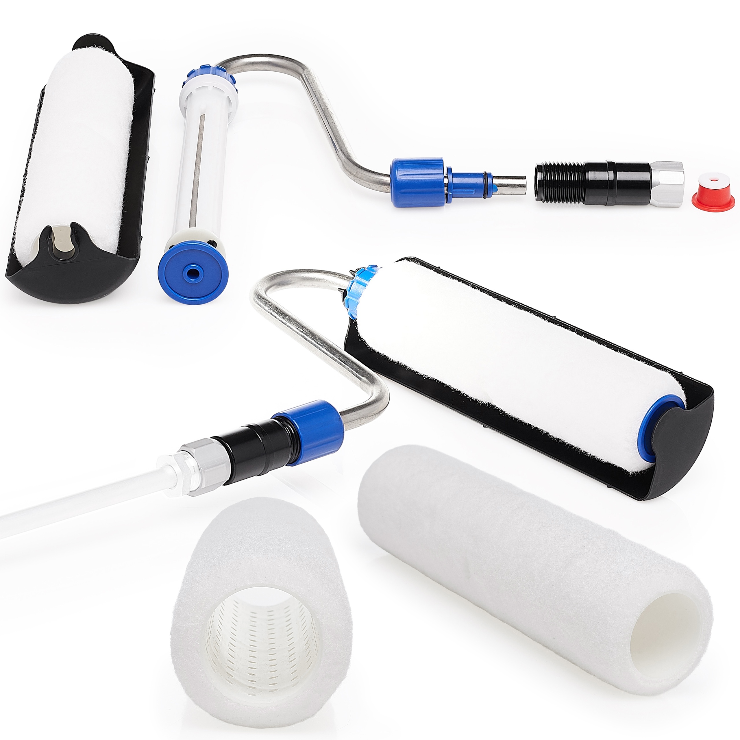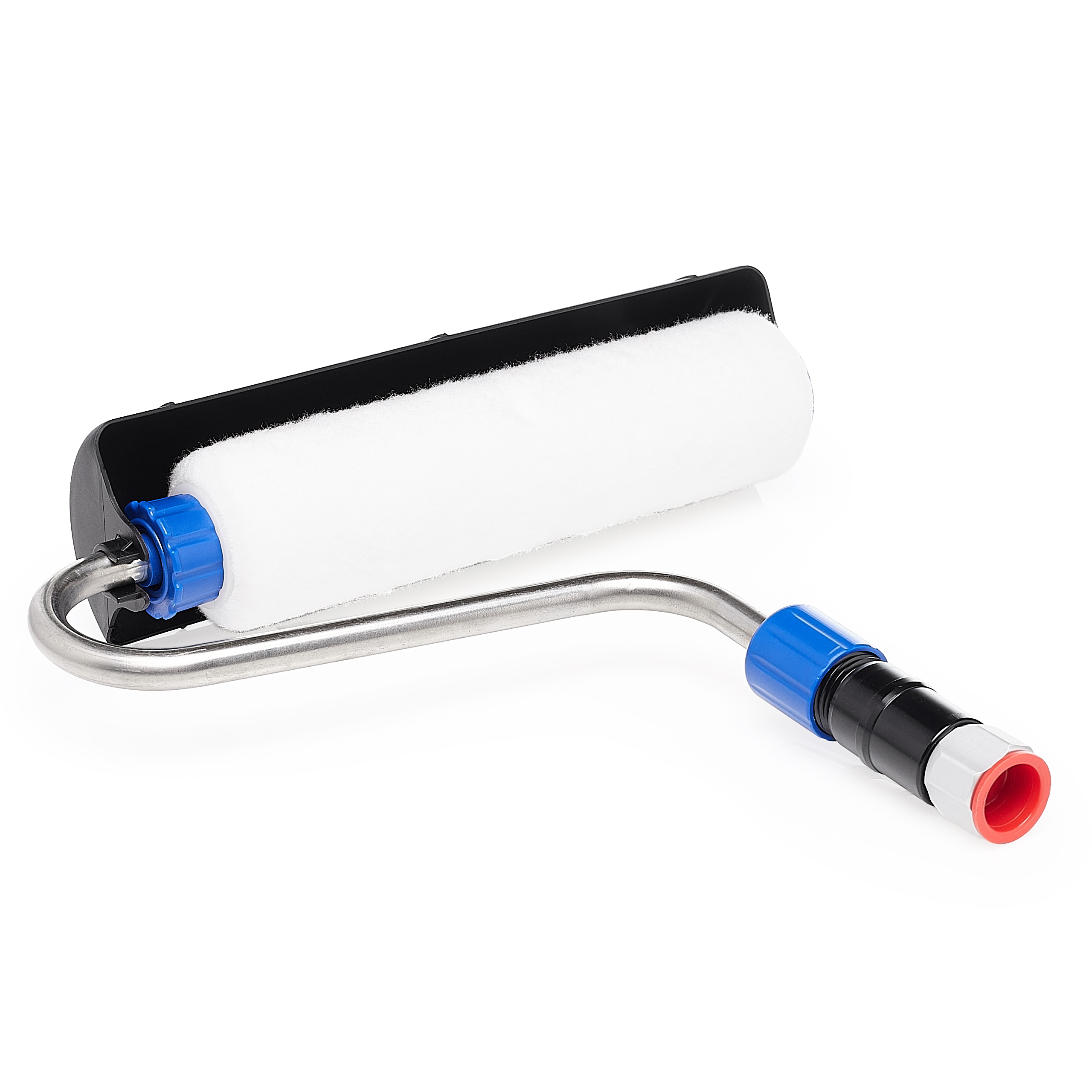 Wałek malarski wyposażony w precyzyjnie dobraną rolkę umożliwia równomierne nanoszenie farby na ściany i sufity, co przekłada się na estetyczny wygląd bez smug. Dzięki bezpośredniemu podłączeniu do agregatu farba dostarczana jest do wnętrza wałka, eliminując potrzebę częstego zanurzania w kuwecie.
