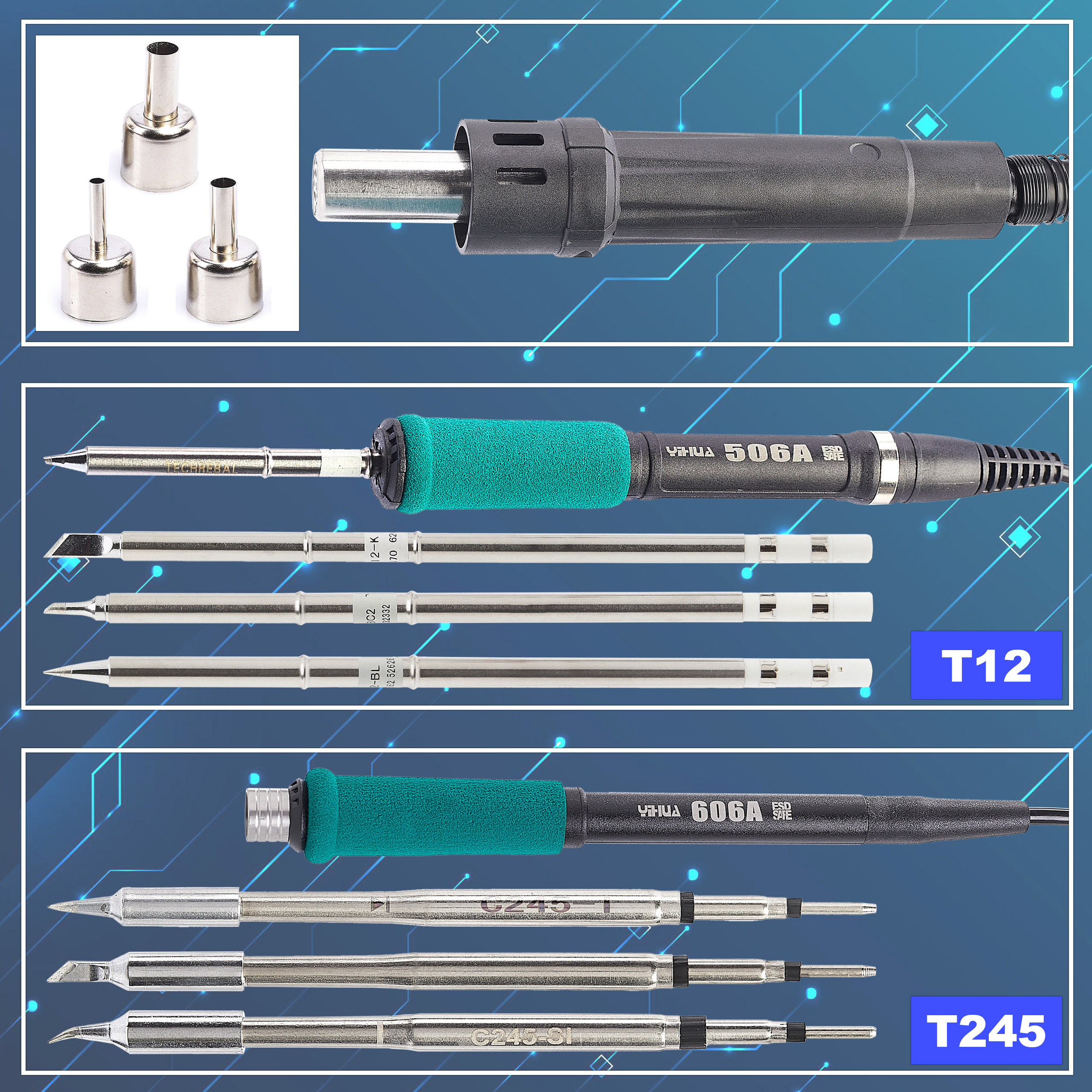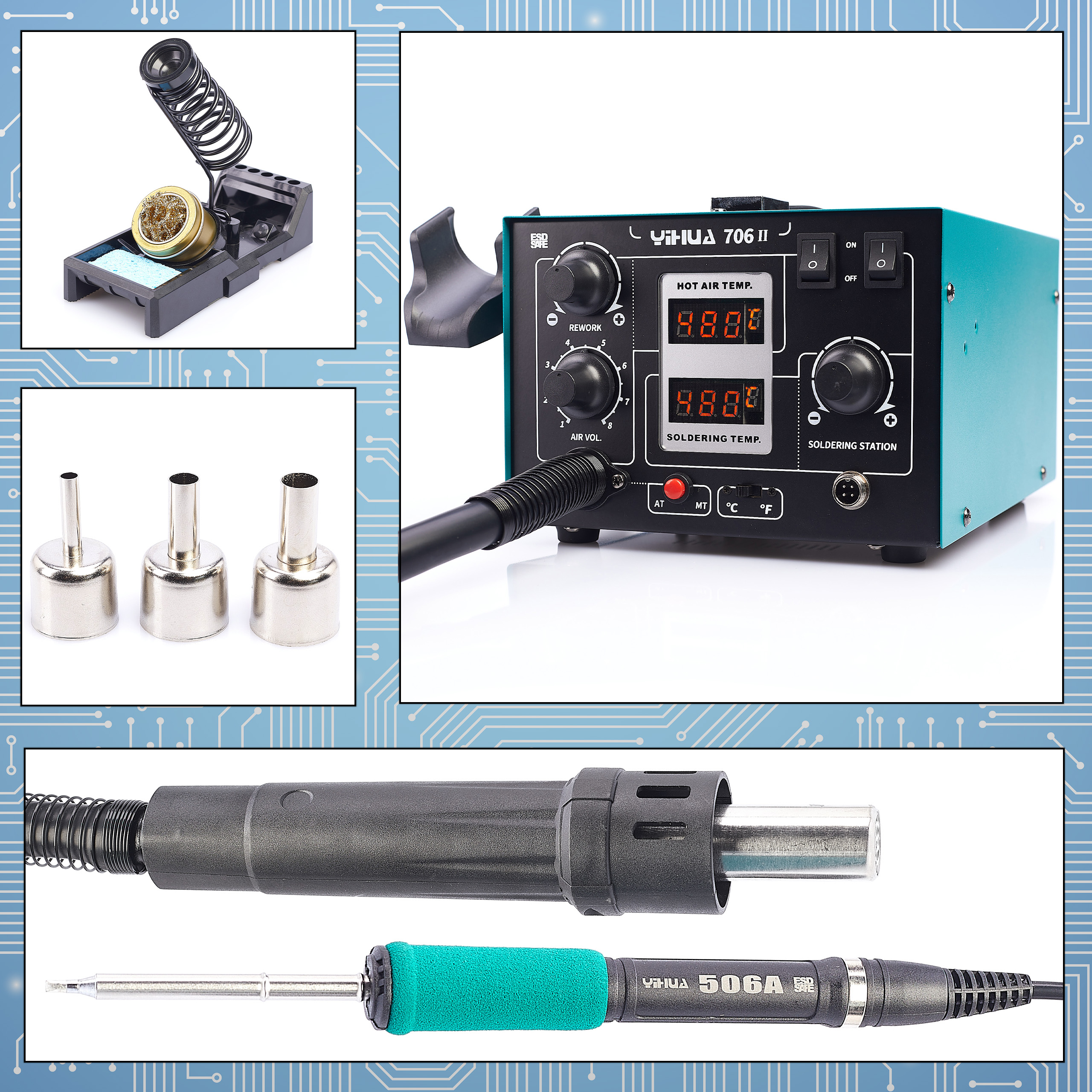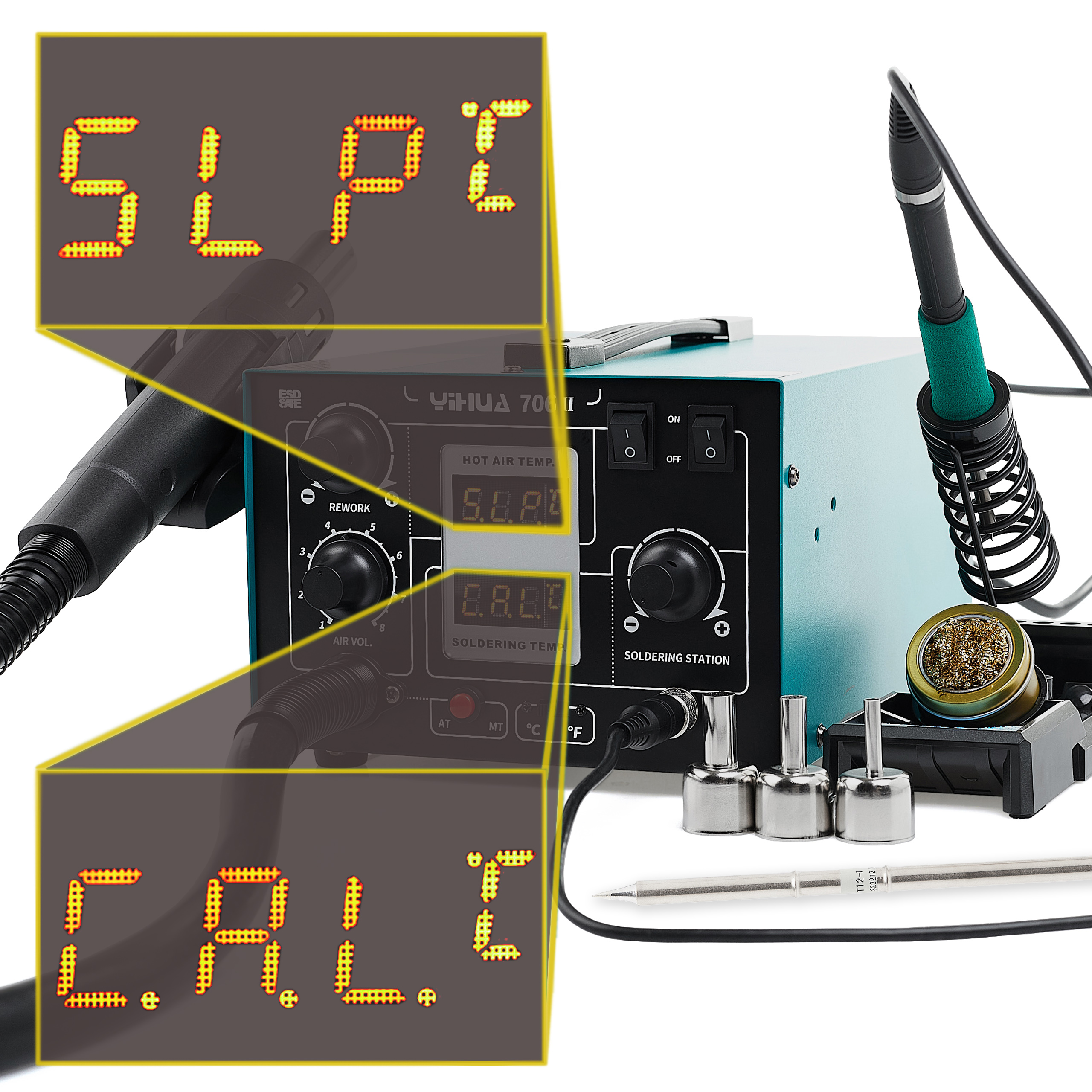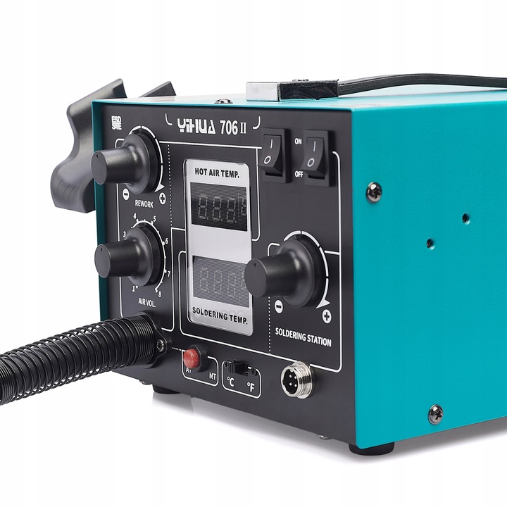 STACJA LUTOWNICZA 2w1 hot air T12 Yihua 706 II precyzyjna mocna ULEPSZONA 5x GROT T12 + Uchwyt do wymiany Grotów