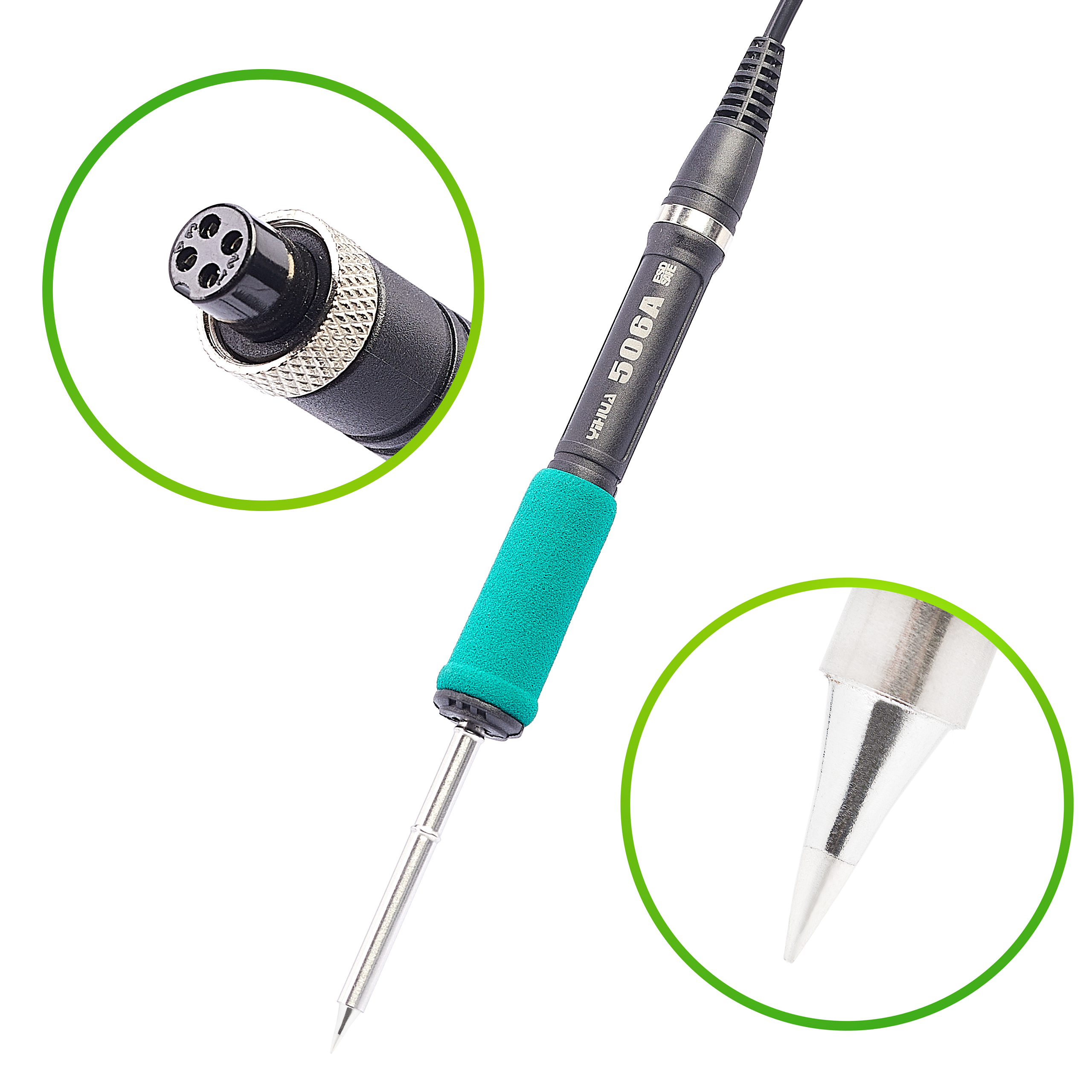 - Tak – gniazdo stacji obsługuje opcjonalną kolbę YIHUA 606A, która pozwala używać grotów C245 o dużej pojemności cieplnej.