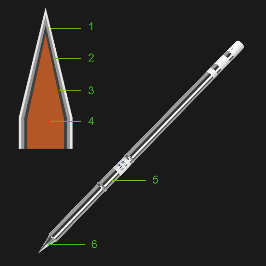 ✅ Szybki sposób wymiary grotów T12 umożliwia ich wymianę na gorąco (przy użyciu odpornego na wysoką temperaturę uchwytu, którymi chwytamy gorący grot).