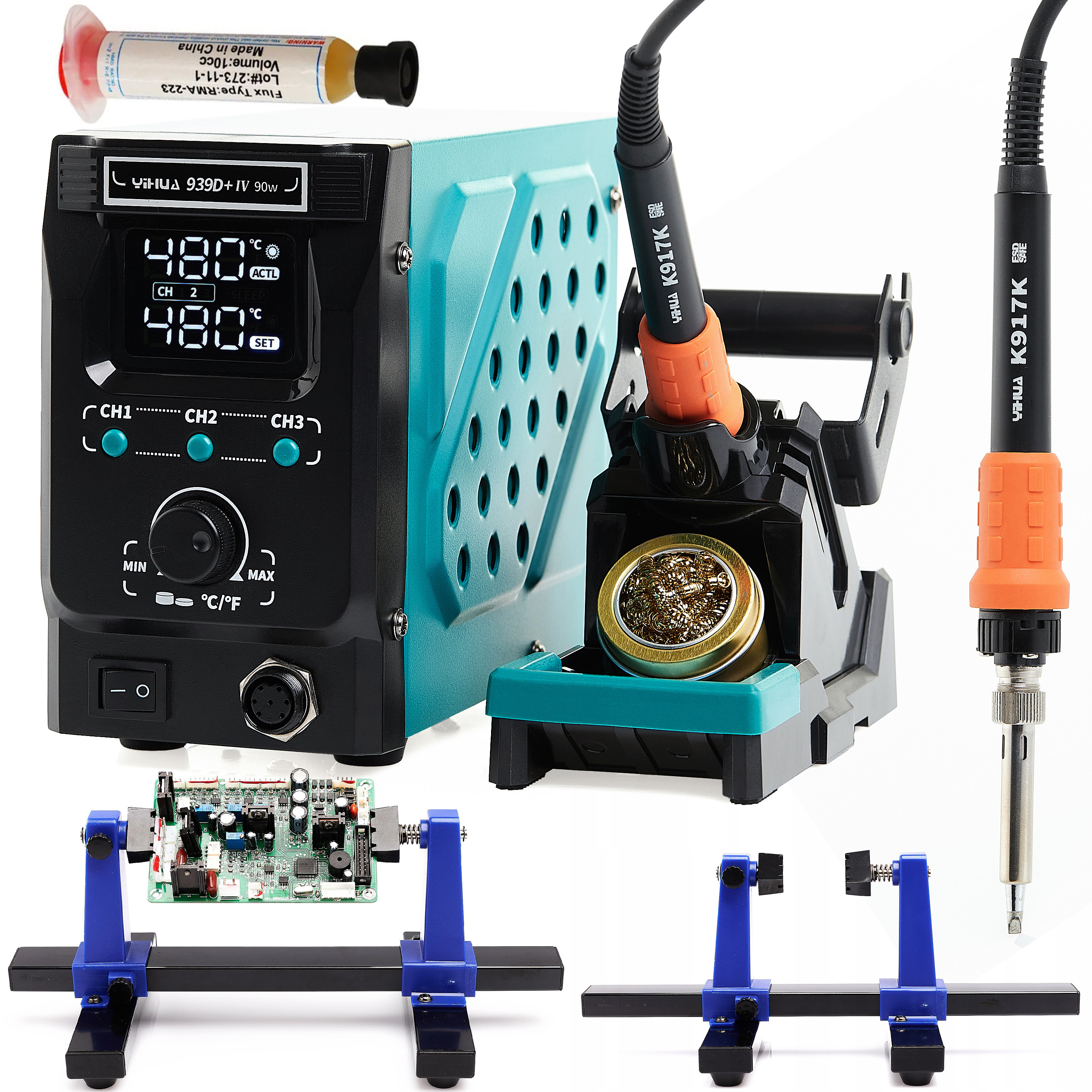 Zestaw Stacja Lutownicza Yihua 939D+-IV 90W + topnik + uchwyt pcb