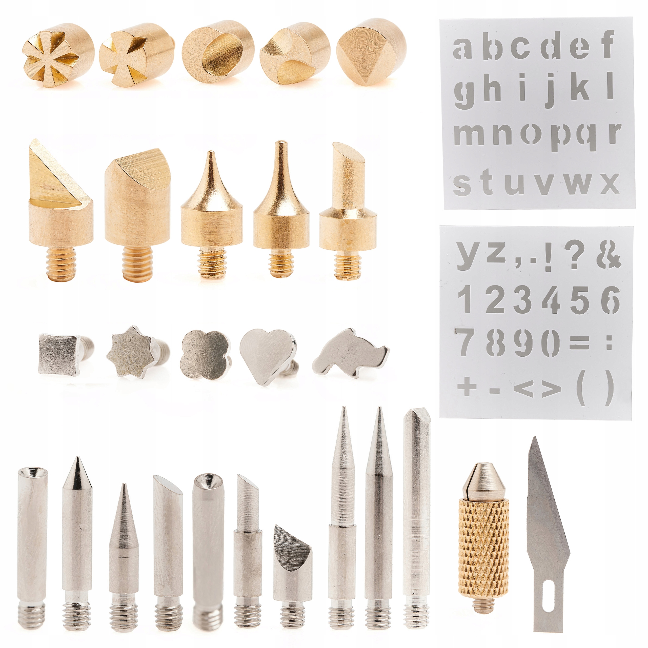 Zestaw grotów, końcówek i szablonów do wypalarki / pirografu 28w1