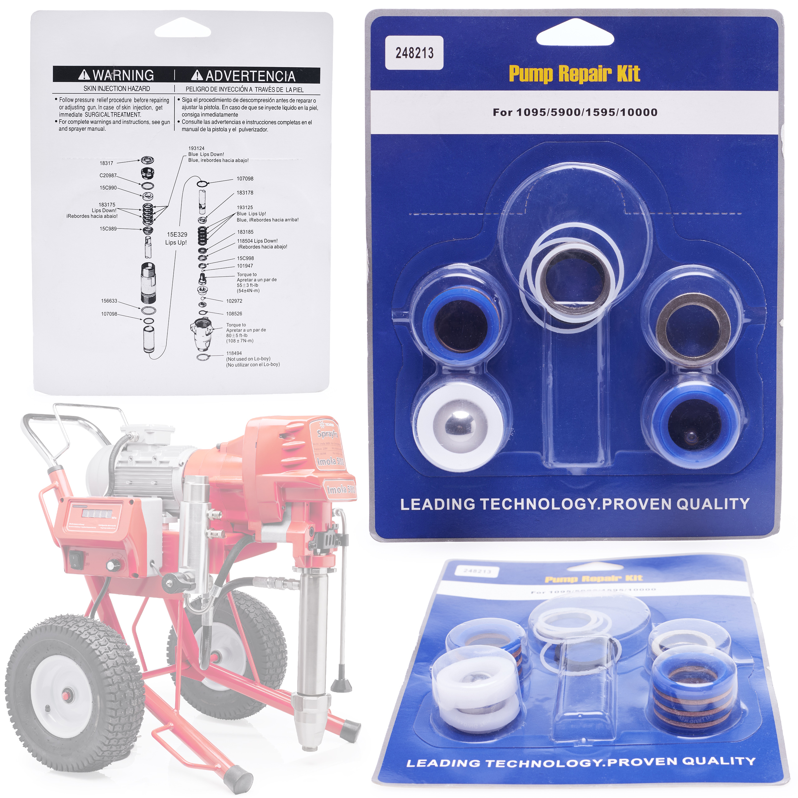 W zestawie znajdują się uszczelki skórzane i teflonowe, które odgrywają kluczową rolę w zachowaniu szczelności i prawidłowego działania agregatu. Dzięki nim unikasz strat ciśnienia i wycieków, co przedłuża żywotność urządzenia. Wysokiej jakości materiały zapewniają odporność na zużycie i działanie chemikaliów, co przekłada się na dłuższą, bezawaryjną pracę agregatu malarskiego.