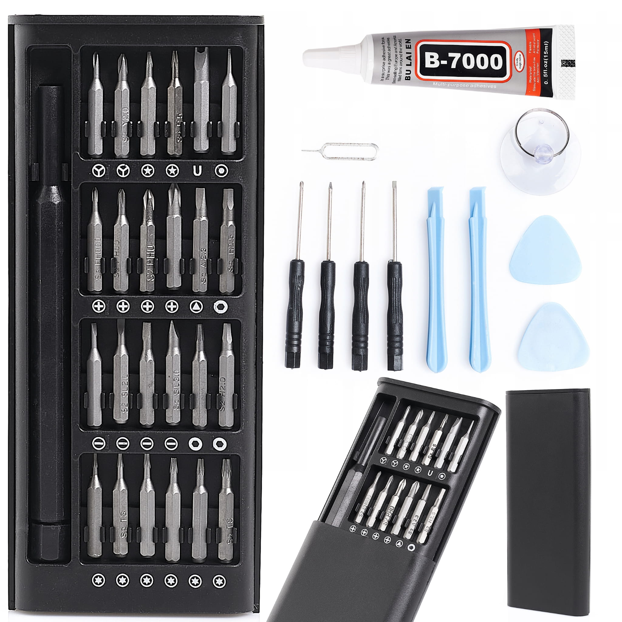 Zestaw precyzyjnych profesjonalnych wkrętaków 24w1 w plastikowej obudowie + narzędzia GSM + klej B-7000