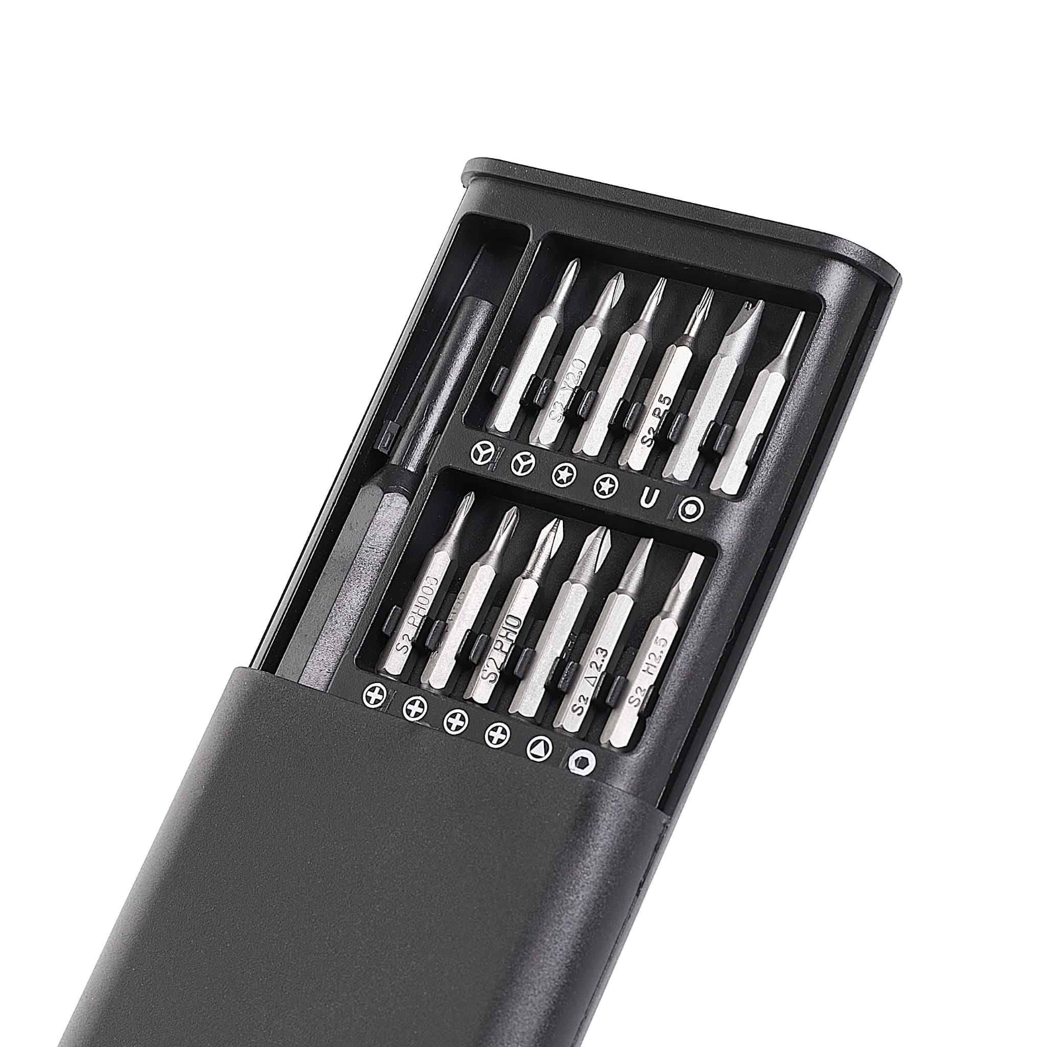 - Magnetyczny uchwyt wkrętaka umożliwia szybką instalację i łatwe do pobrania śruby. Uchwyt magnetyczny sprawia, że wszystkie bity można trzymać mocno, nawet w czasie gdy są odwrócone. Niewielki rozmiar sprawia, że zestaw jest idealnym produktem kieszonkowym