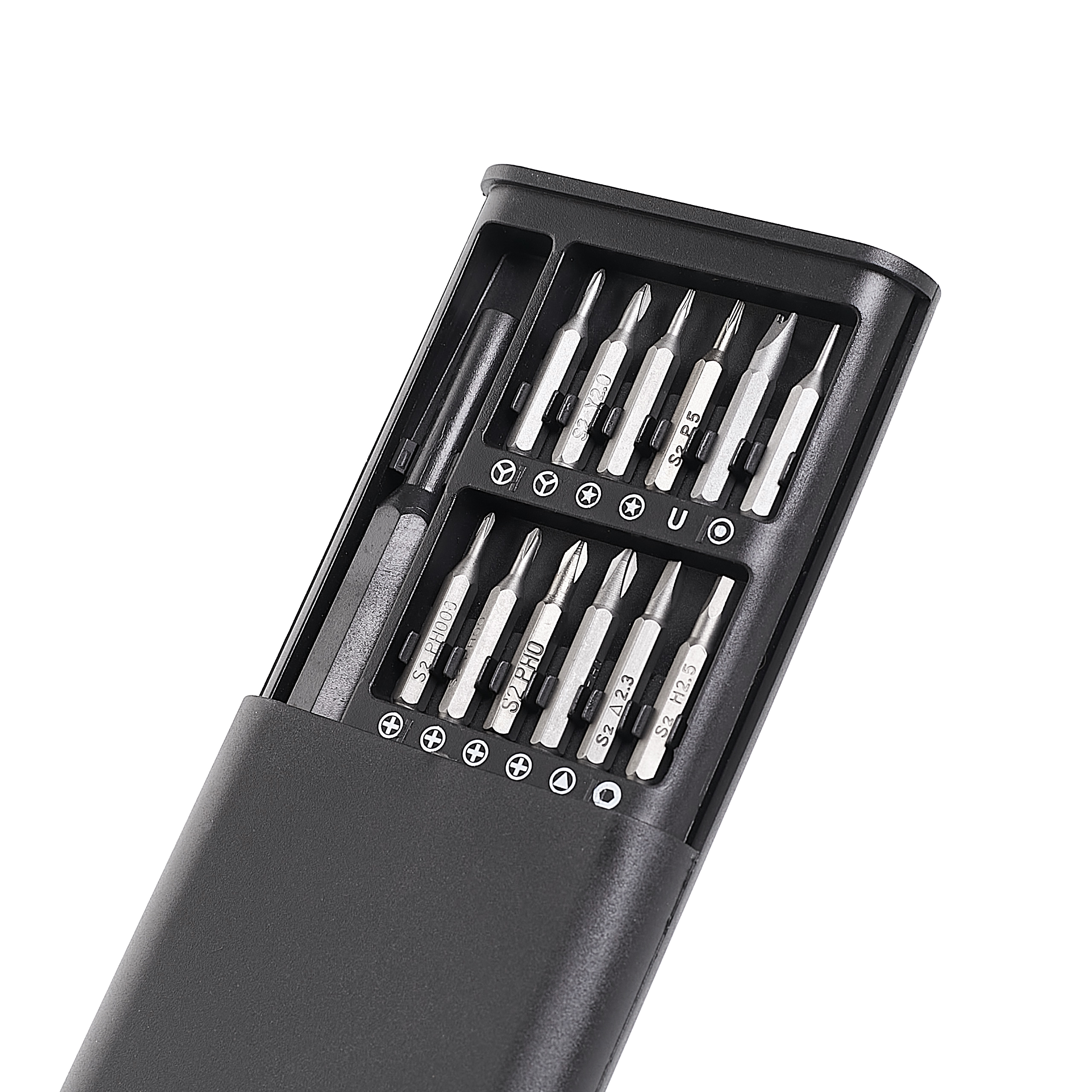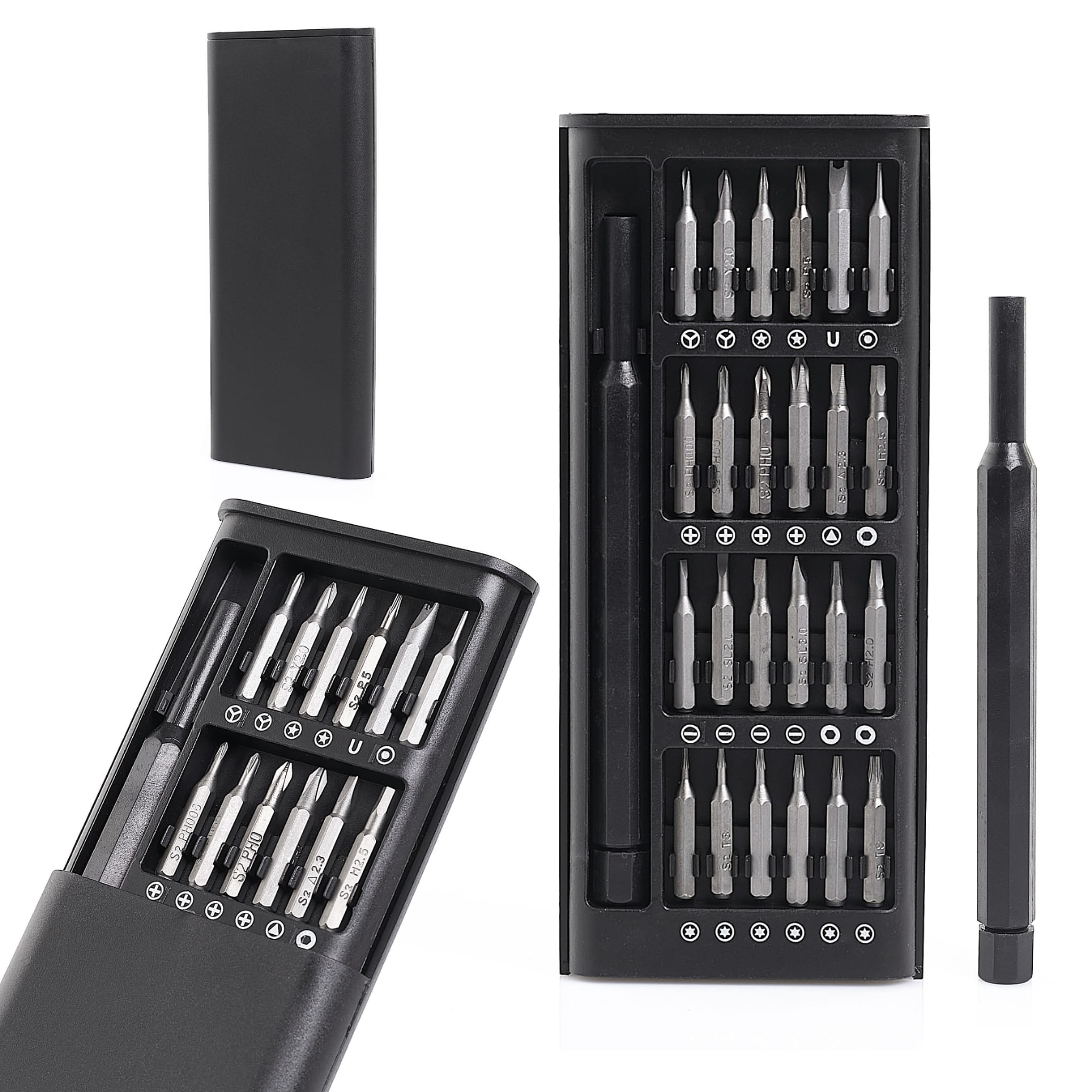 Zestaw 24 w 1 zawiera śrubokręt z wymiennymi wkrętakami i praktycznymi końcówkami. Uchwyt zapewnia komfort i wygodę. Wszystkie bity są magnetyczne, stabilnie łączą się z uchwytem. Zestaw wkrętaków charakteryzuje się doskonałym wykonaniem. Wykonane ze stali, która jest wyjątkowo twarda, odporna na zużycie. Każdy bit jest wygrawerowany na powierzchni, dzięki czemu możesz szybko zidentyfikować lub rozpoznać, czego potrzebujesz. Antypoślizgowa matowa powierzchnia wkrętaka, obrót o 360 stopni, a konstrukcja uchwytu zapewnia dodatkowy komfort.
