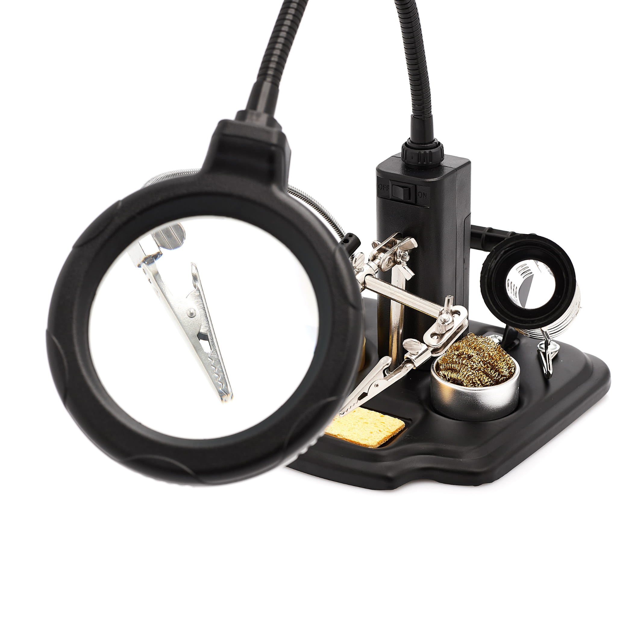 Trzecia Ręka z Lupą oraz podświetleniem LED i uchwytem na lutownicę - ZD-10Y.