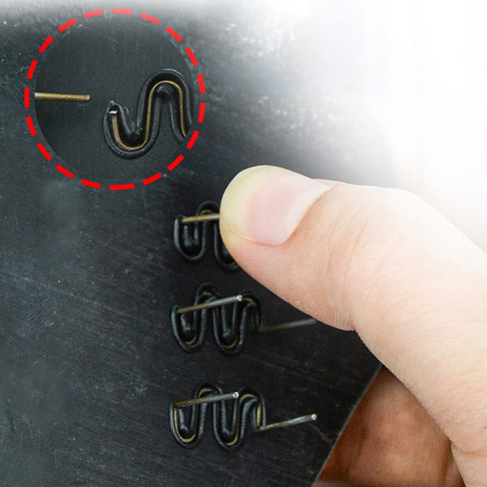 ✔️ Zszywka do plastiku ”mała fala” - do prostych, najmniej wymagających połączeń. Aby wzmoznić połączenie jest delikatnie pofalowaną. Nadaje się również do okrągłych przedmiotów.