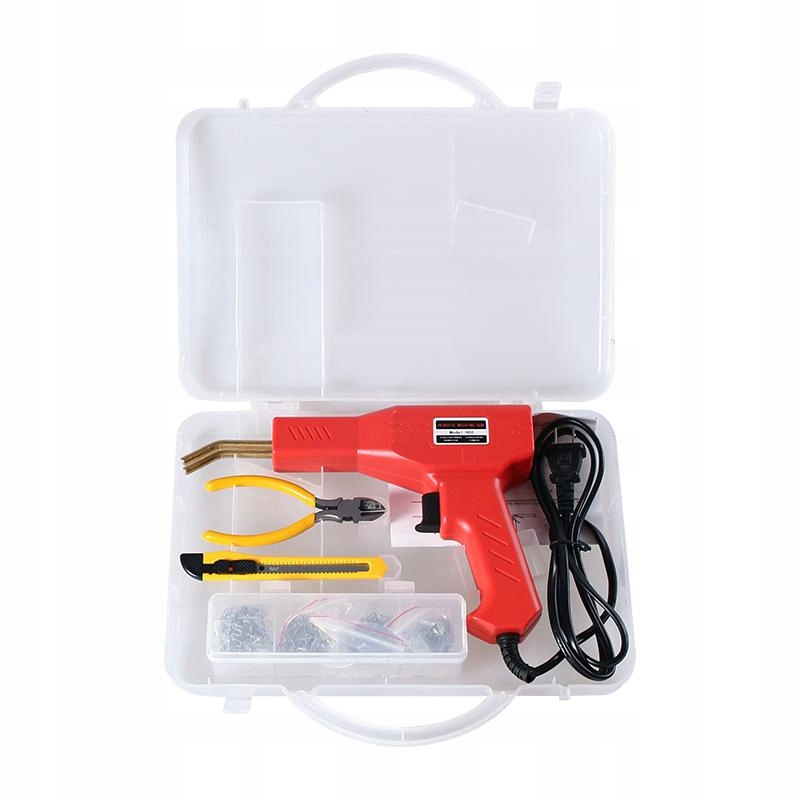 Zszywacz do plastiku + 200 zszywek, nożyk, szczypce + Zestaw do spawania plastiku - 9 elementów + Zszywki do plastiku 6 rodzajów - 600szt.