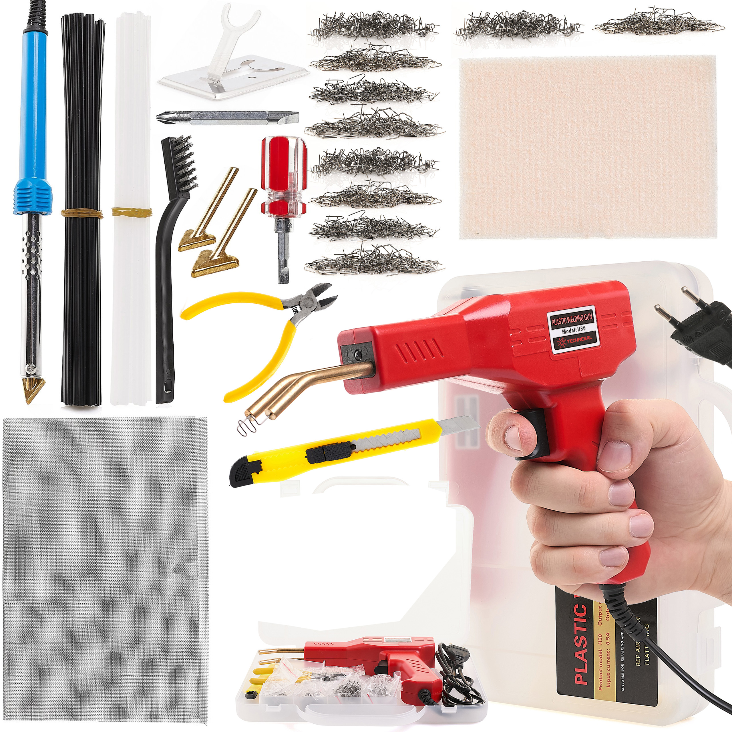 Zszywacz do plastiku H50 + Zestaw do spawania plastiku 9 elementów + Zszywki do plastiku 6 rodzajów po 100szt.